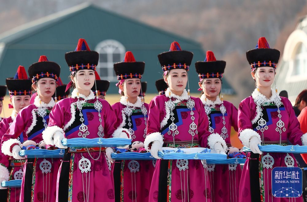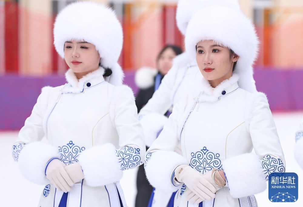 ↑2月18日,礼仪志愿者在扎兰屯赛区颁奖仪式上。新华社记者 龙雷 摄