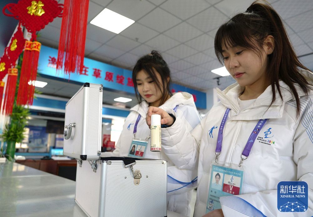 ↑2月19日,志愿者在扎兰屯金龙山滑雪场志愿者服务台整理应急药品。新华社记者 李嘉南 摄