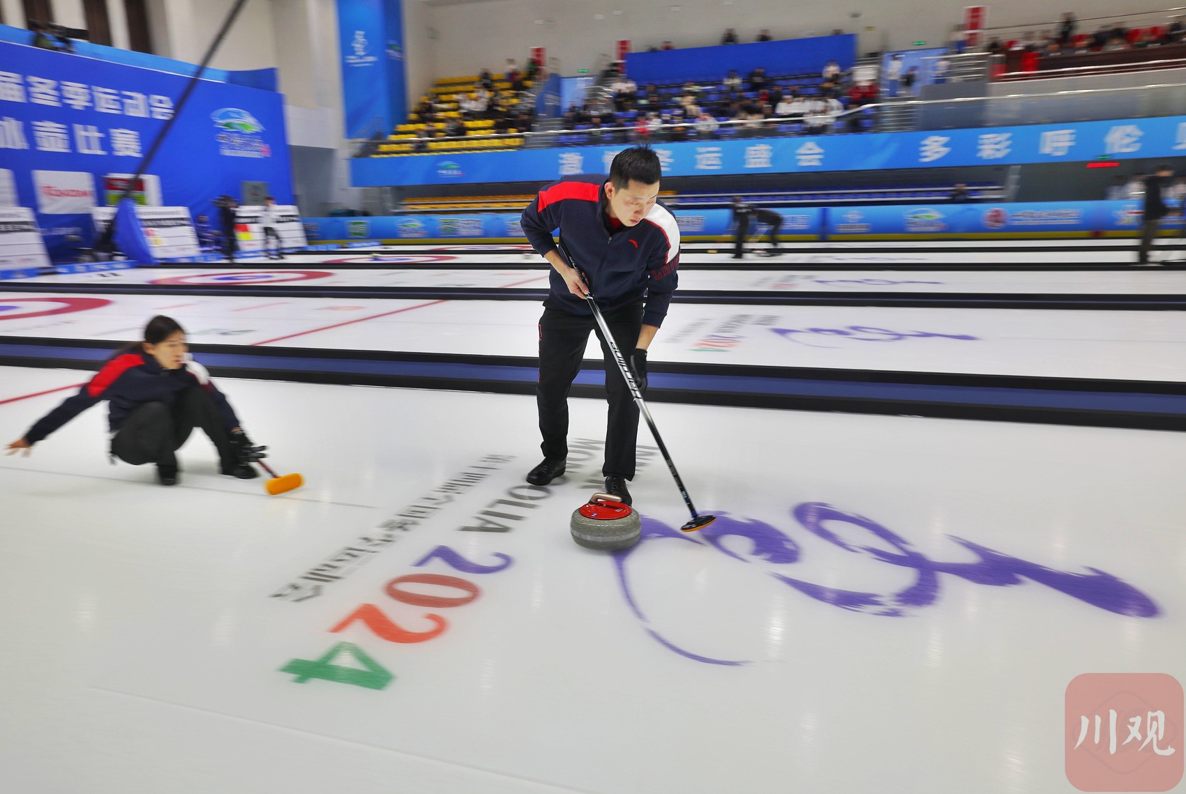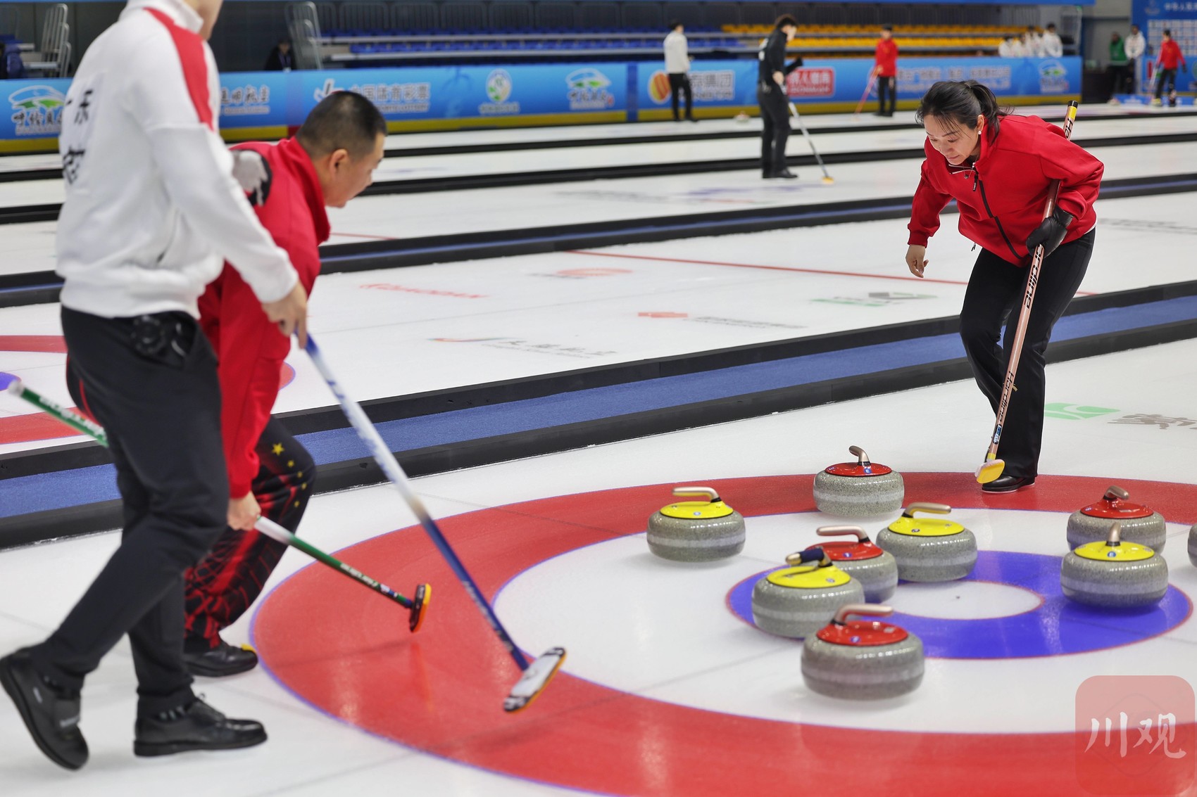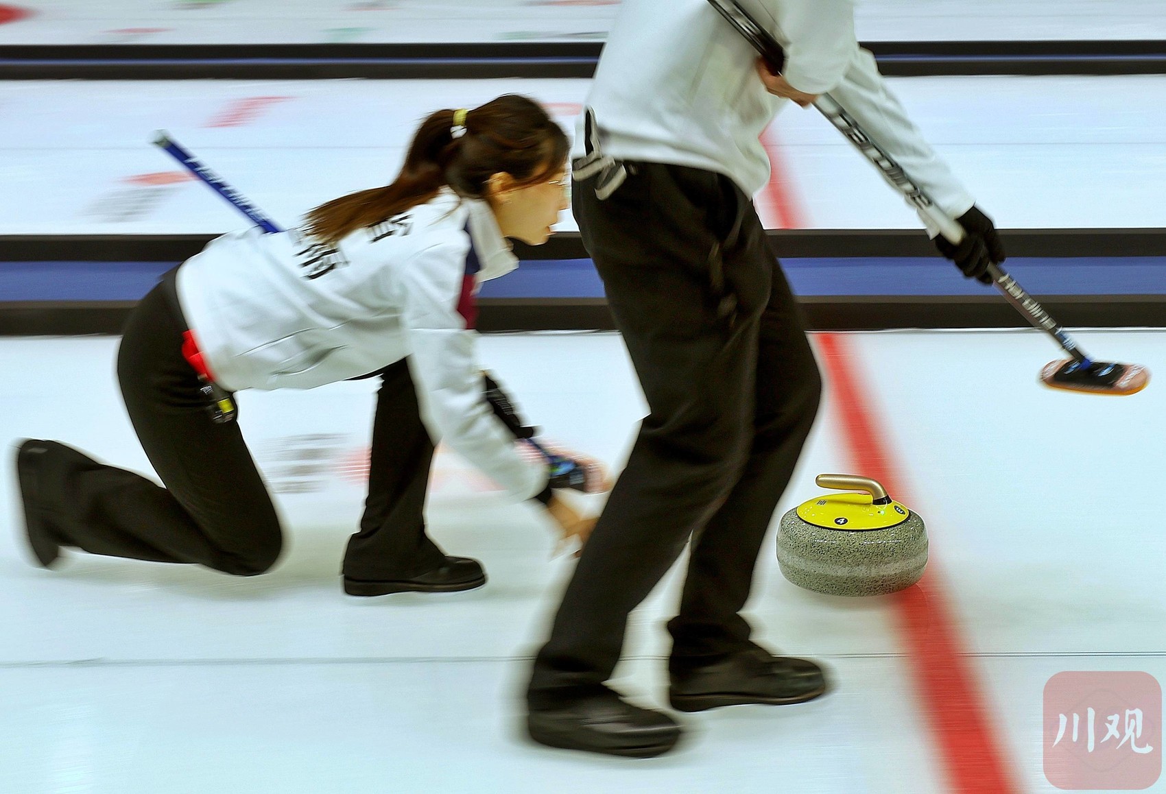 混合双人是冰壶的新兴项目,预先放置定位壶是比赛特点,占位、进营、击打、扫冰,分别投出5壶,营内壶更接近圆心得分。冰壶运动在呐喊中展现静动之美。