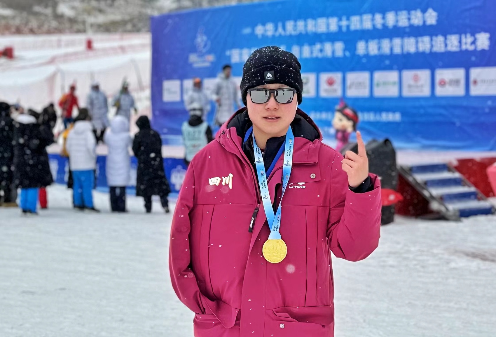 今年25岁的潘禹辰此番是第二次参加全国冬季运动会的比赛。2016年的第十三届全国冬季运动会,潘禹辰曾获得自由式滑雪U型场地女子个人赛的铜牌,团体赛的金牌。近年来,因为伤病的原因,她不得不选择离开U型场地而转练难度稍低的障碍追逐赛。不过凭借在U型场地积累的丰富经验,潘禹辰很快在障碍追逐赛中崭露头角。2023年,她在2022-2023赛季全国自由式及单板滑雪障碍追逐锦标赛中拿到冠军,此番又站在了全国冬季运动会的最高领奖台上。“今天发挥得挺好的,听到成绩那一刻,我还是很开心。”虽然右手的伤势疼得她一直咧着嘴,但潘禹辰还是很骄傲的说,“太棒了!四川,雄起!”
