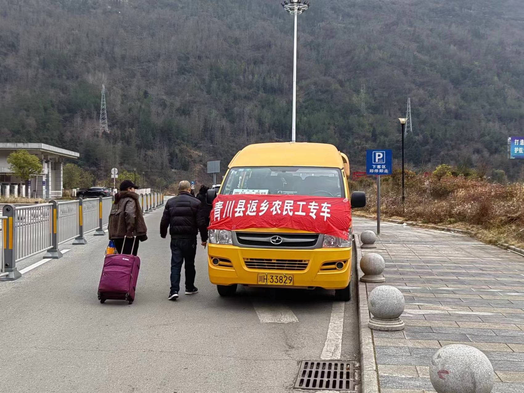 2月14日,83名旺苍外出务工人员坐上“返岗”专车,回到了浙江宁波、温州、台州以及四川成都等务工地。专车采用“点对点、一站式”的运输方式,中途不用换乘;出发前,当地人社、交通、工会、司法等部门还送上“爱心礼包”,里面装有面包、自热米饭、矿泉水等。