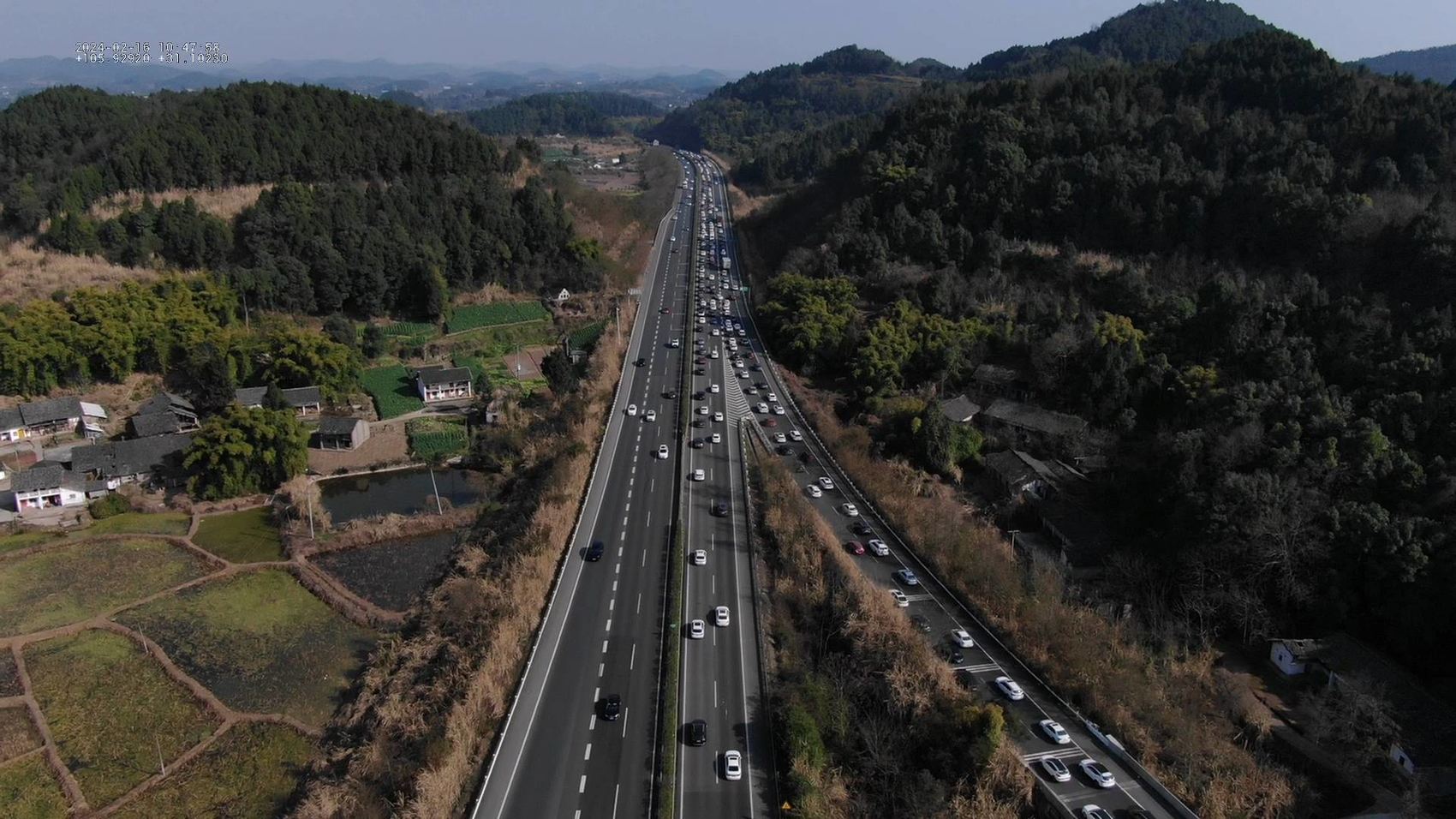 2月16日上午11时许,S29遂西高速公路关文枢纽,返程高峰至,往成都方向车辆明显偏多。四川省交通运输厅供图