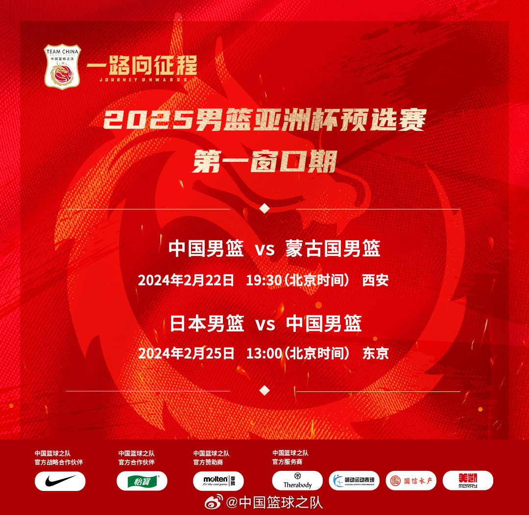 2月22日,中国男篮新一届国家队将开启龙年第一场正式国际比赛,在2025年男篮亚洲杯预选赛第一窗口期比赛首战对阵蒙古,随后在2月25日客场挑战日本。