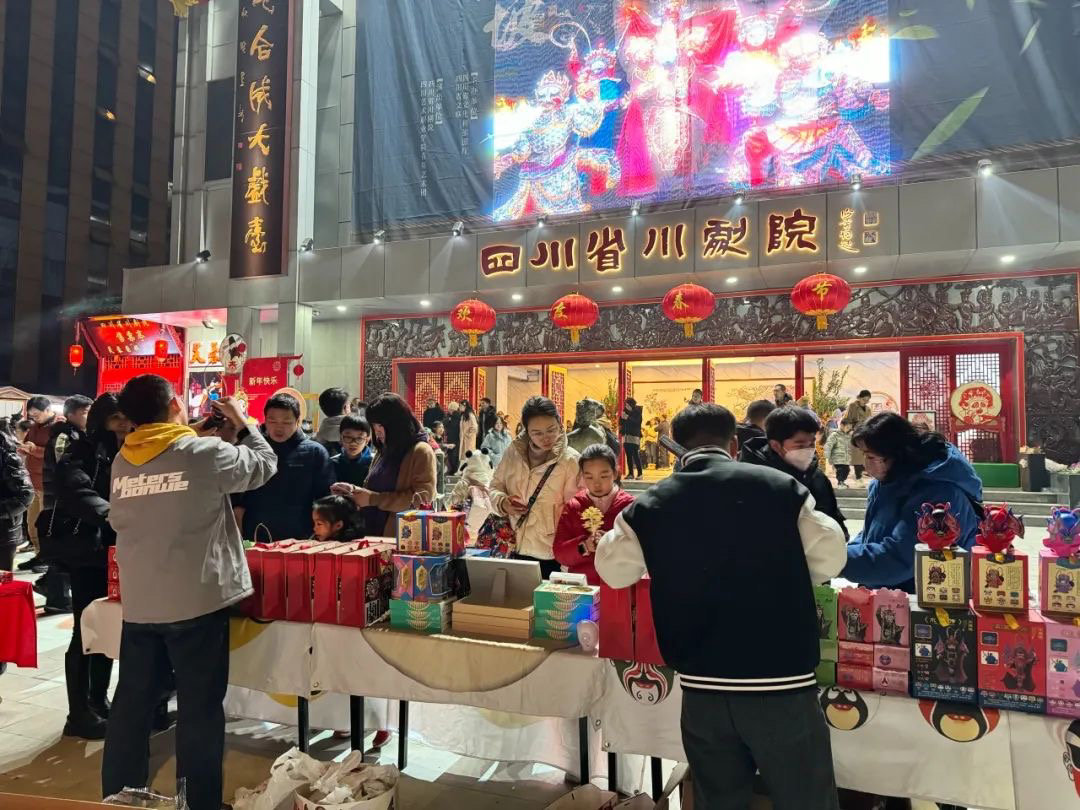 “川剧很有特色,我很多年前看过一次,这次特意带孩子来,在剧院里感受传统文化和春节氛围。”来自杭州的游客李玉明说,除了看川剧演出,她还在集市选购了文创产品,“根据四大名著设计的川剧变脸很有意思,准备带两套回去送给亲朋好友。”