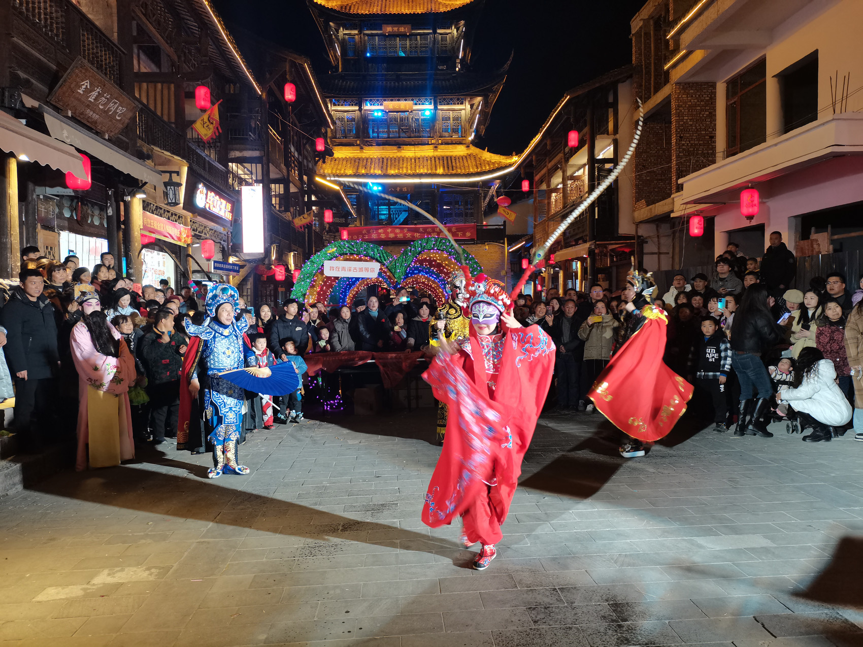 香飘海外的同时,成都街头巷尾戏文声、锣鼓声、叫好声响成一片,成为春节期间不可或缺的一抹亮色。