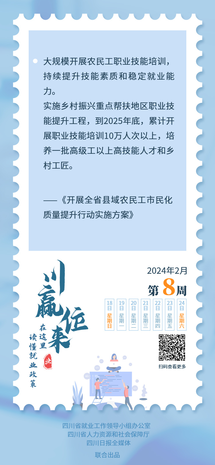朋友们,大家好!农民工的技能素质与稳定就业密切相关,本期“川赢位来·就业政策周历”一起分享全省县域农民工市民化质量提升行动的相关政策。