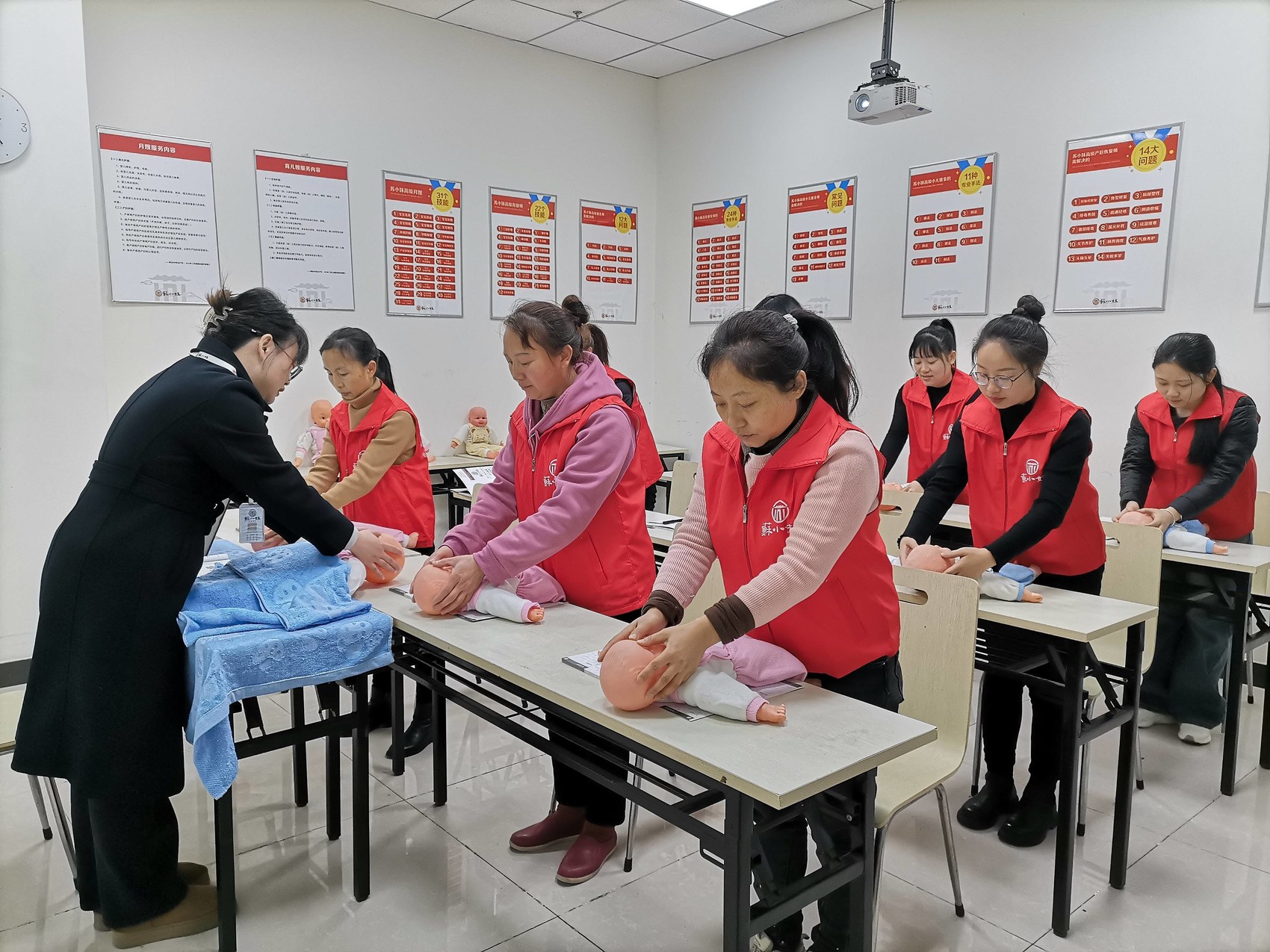 “抱婴儿时,不要晃来晃去,也不能竖抱,这样会影响婴儿的脊柱发育……”2月21日,一场免费的家政培训在眉山苏小妹商业管理有限公司教室内举行,培训员边讲解边示范,学员们聚精会神地学习。