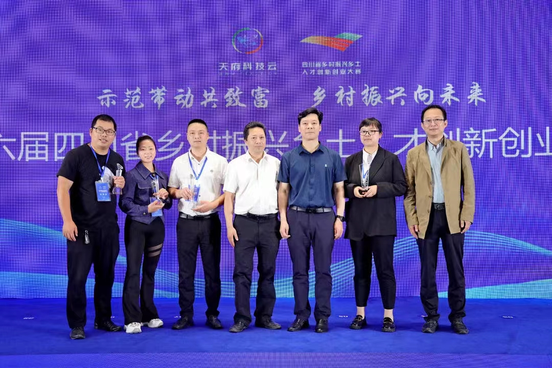 第六届四川省乡村振兴乡土人才创新创业大赛中李治菲(左二)获铜奖,此为领奖现场。受访者供图