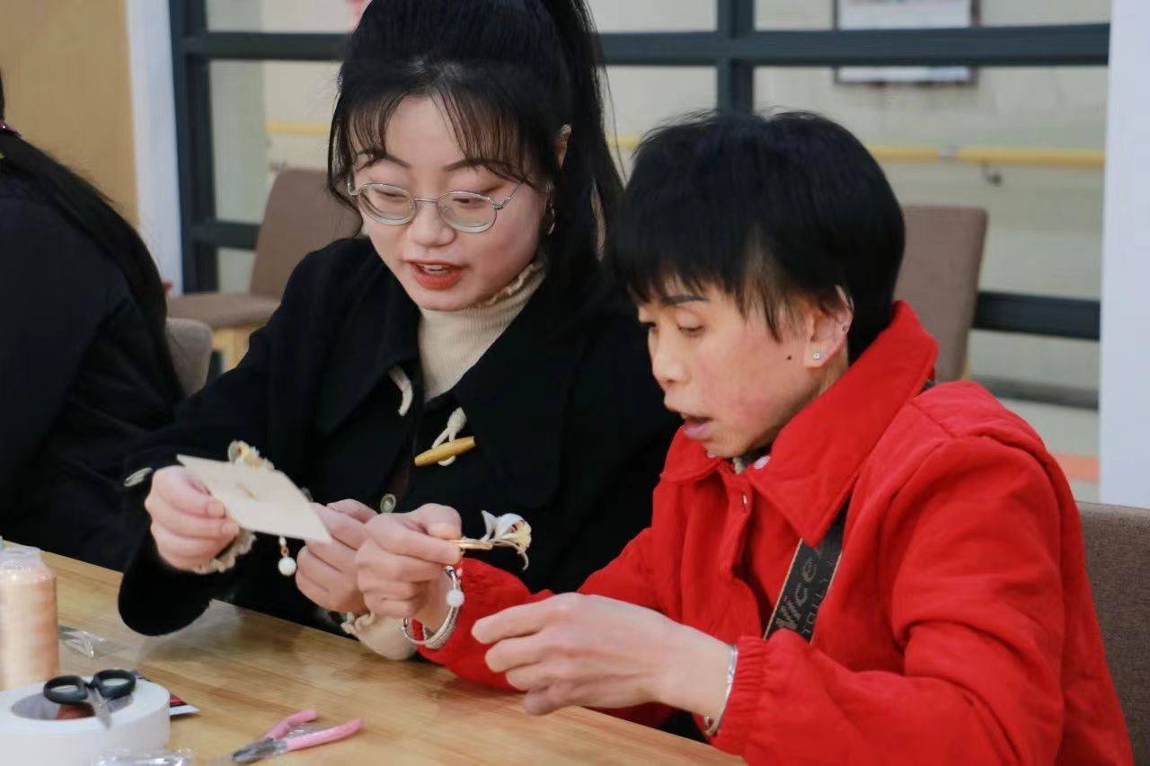 2月20日,青白江区残疾人非遗缠花技能培训班在青融创文化创意产业基地开班。受访者供图