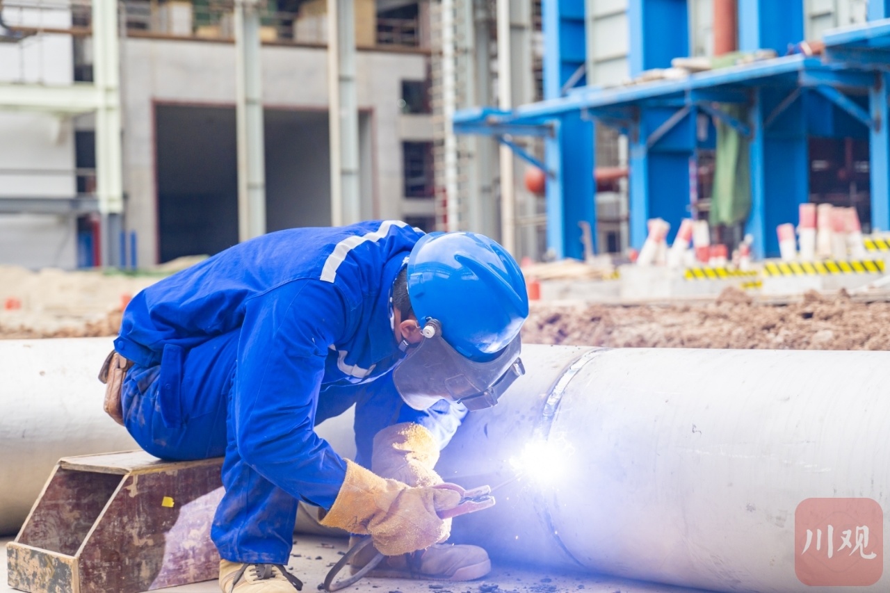 工人正在进行管道和配套设施的安装。(资阳观察 吴昊江/摄)
