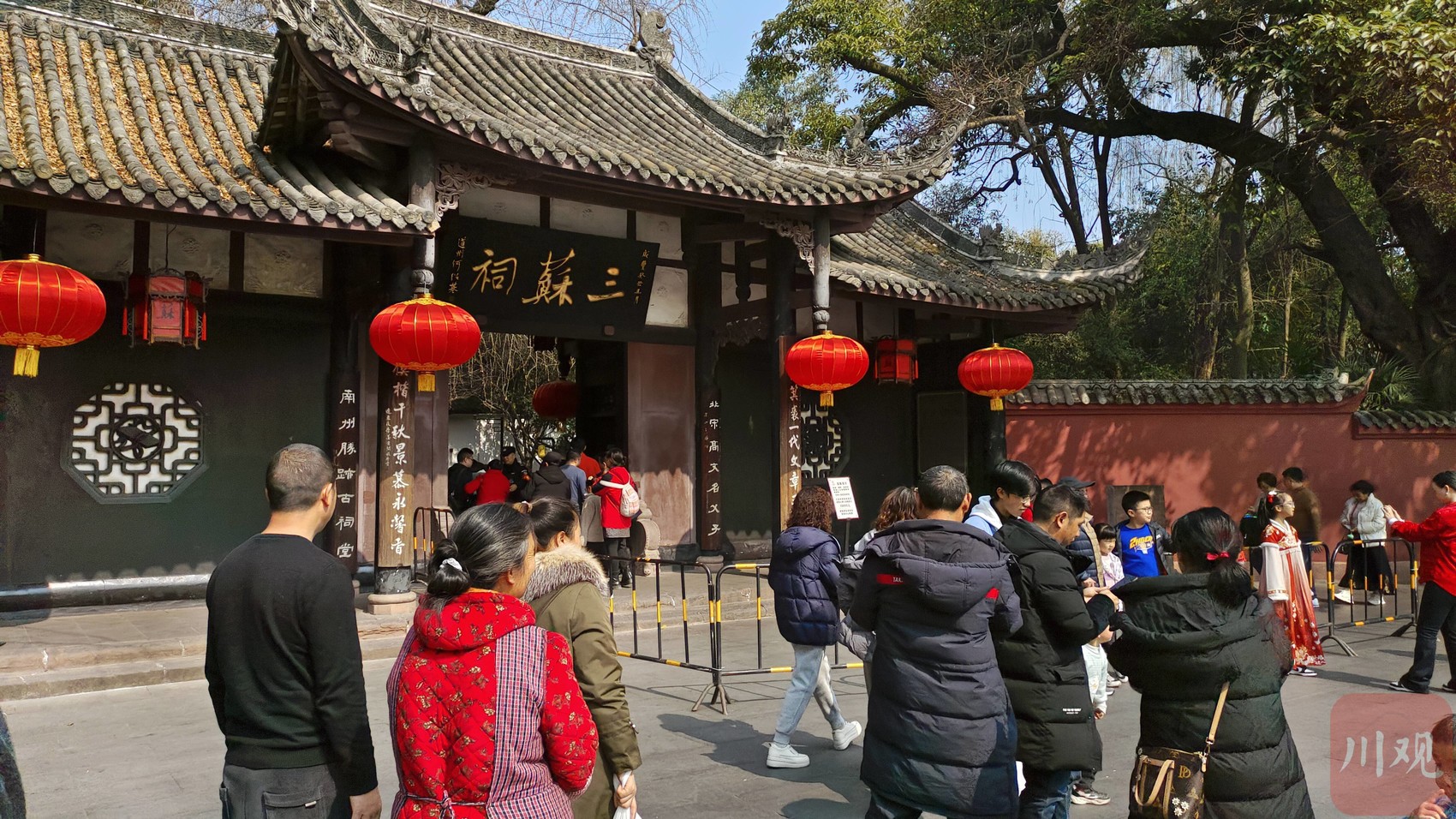年味里,有文化大餐的味道。2月14日一早,四川日报全媒体记者在眉山市东坡区三苏祠遇到了“特别忙”的金牌讲解员郑小利。这个春节三苏祠开展了丰富多彩的新春文化惠民活动,包括郑小利在内的导游们忙不停。“春节假期以来,祠内游客数量每天都接近万人,团队讲解员都在满负荷运转,至少提前几天才能预约到讲解。”眉山东坡宋城文化旅游发展有限公司总经理叶雷蕾介绍,相比往年春节,今年三苏祠游客接待量翻了一番,每位讲解员一天至少要带六七个团。