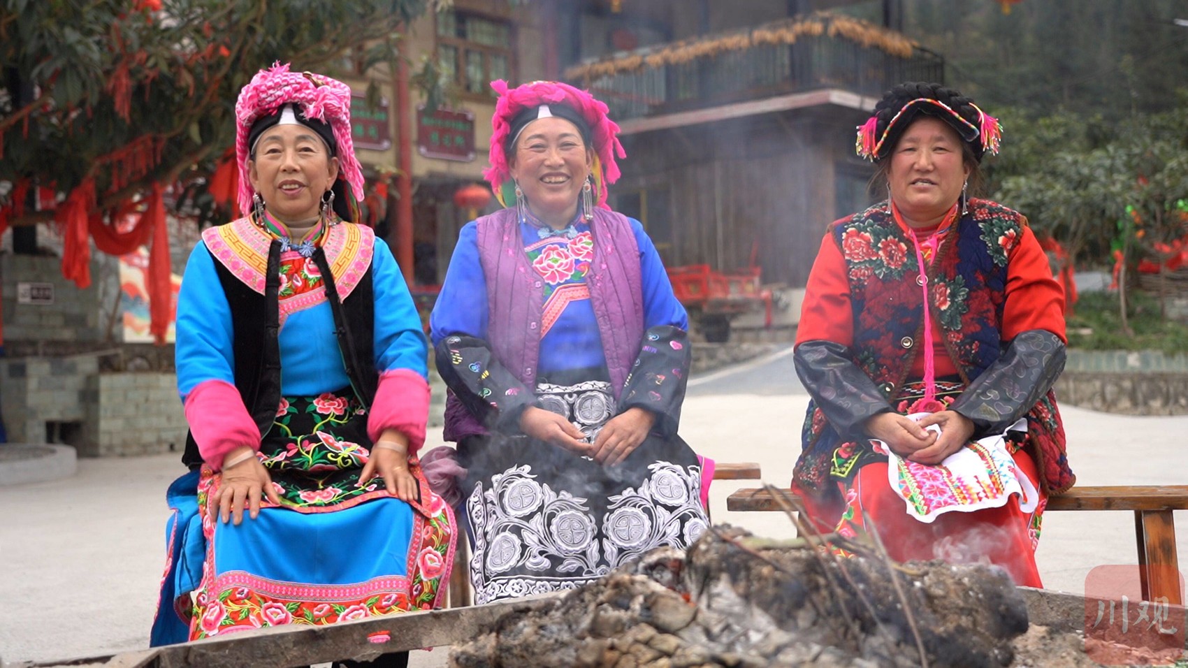 春节期间,绵阳市北川县石椅村,穿着民族服饰的村民围坐在火炉旁话家常。付乔崧 摄