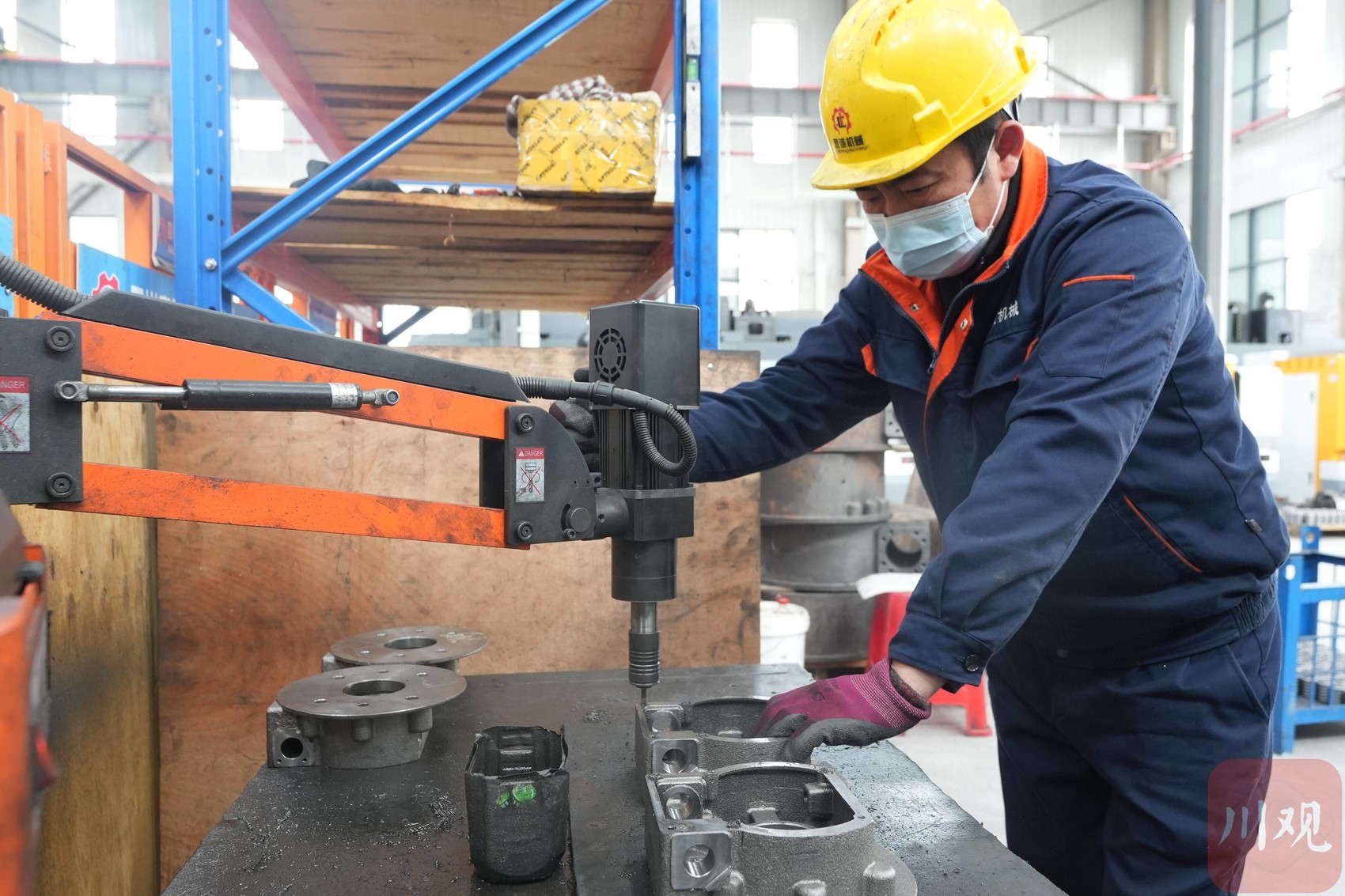巴中市通江县新能源新材料产业园,四川家诚阀门机械有限公司工人正在调试机械设备。谭小龙 摄