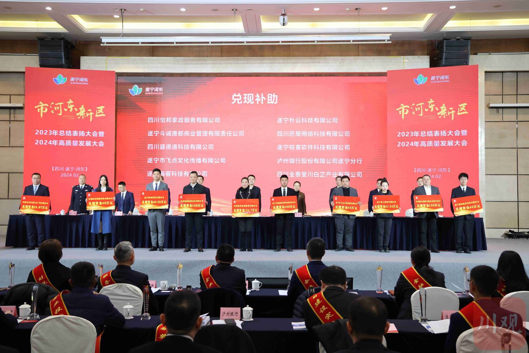 2月23日,遂宁市河东新区召开2023年总结表扬大会暨2024年高质量发展大会。在会上,该区为四川怡邦家政服务有限公司、遂宁斗诚唐都商业管理有限责任公司等10家企业现场兑现企业奖补资金673万元。据悉,遂宁市河东新区2023年累计为企业兑现各类奖补资金5200余万元,将“真金白银”政策激励从“纸上”落到企业“账上”。