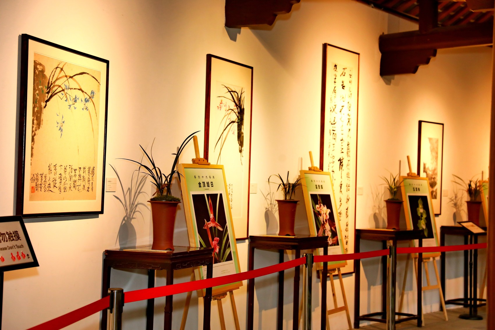国兰文化艺术长廊展出谢季筠、郭强、何开鑫、舒炯、冷柏青等18位四川当代著名书画家创作的兰花主题书法绘画作品26件,这些作品形式多样,风格各异,人文气息高雅,艺术内涵丰富,书画家用自己的艺术语言将兰花健美俊秀、典雅高洁的精神内涵表现的淋漓尽致。