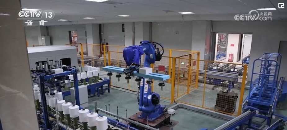 研发快速、制造智能,在浙江的一个锦纶生产车间,从原料配送、落筒、丝饼传输检测、包装和仓储都已实现全流程智能制造,24小时开工。