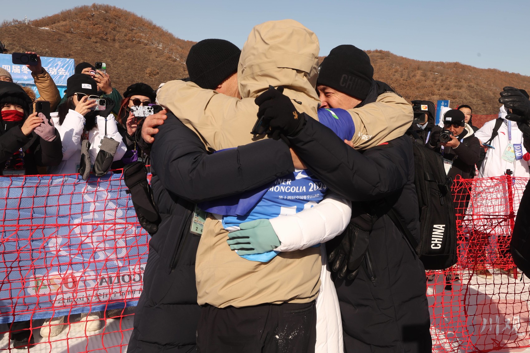 23日的“十四冬”单板滑雪大跳台男子公开组比赛无疑是众多单板迷关注的热点,因为有奥运冠军苏翊鸣的参战。比赛没开始,大跳台观众位就被占满,那怕室外气温已接近零下20度,大家依然热情高涨。苏翊鸣在第一跳发挥一般,第二跳、第三跳及时调整了状态,最终以182.60的总成绩获得冠军,夺冠后的苏翊鸣和教练们相拥庆祝。“顶住了压力,在赛场上能和好朋友一起竞争彼此激励,能获得全国冬运会冠很开心。”苏翊鸣说。