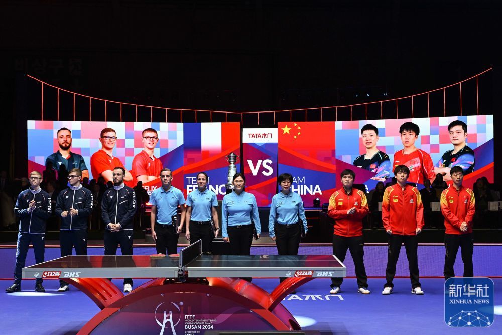 2月25日,在韩国釜山进行的2024年国际乒联釜山世界乒乓球团体锦标赛男子团体决赛中,中国队以3比0战胜法国队,夺得冠军。