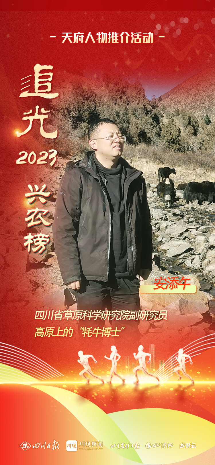怀着一份对农业科学的热爱,安添午走上了致力于高原牦牛研究与发展的科研之路。不惧高原牧区生产条件的艰苦和牦牛产业发展的种种挑战,安添午坚持常年扎根高原,深入生产一线为牦牛产业服务,在牦牛育种、饲养管理等领域,进行科研、技术集成创新及推广应用示范等,将科研成果转化为实际生产力,为提升牦牛产业链质量和效益做出了突出贡献。
