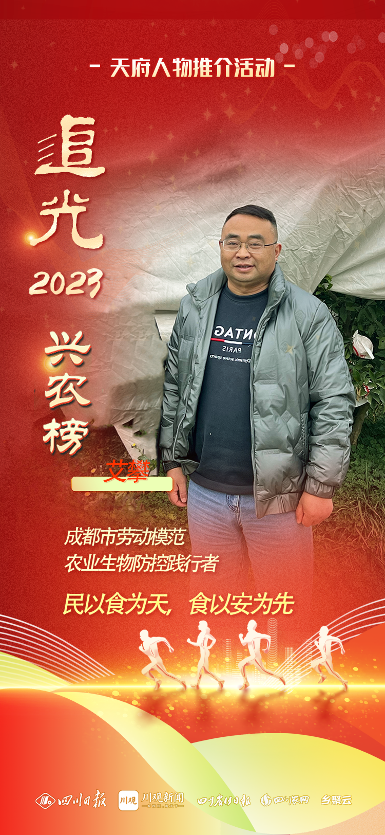 艾攀,四川省卫农现代农业科技有限公司总经理,先后创建以四川省卫农现代农业科技有限公司为总部基地的十余家卫农服务组织,2020年12月获得成都市劳动模范称号。农业绿色防控替代化学防治的践行者,天敌防控的先行者,对推动农业高质量、绿色发展具有重要意义。