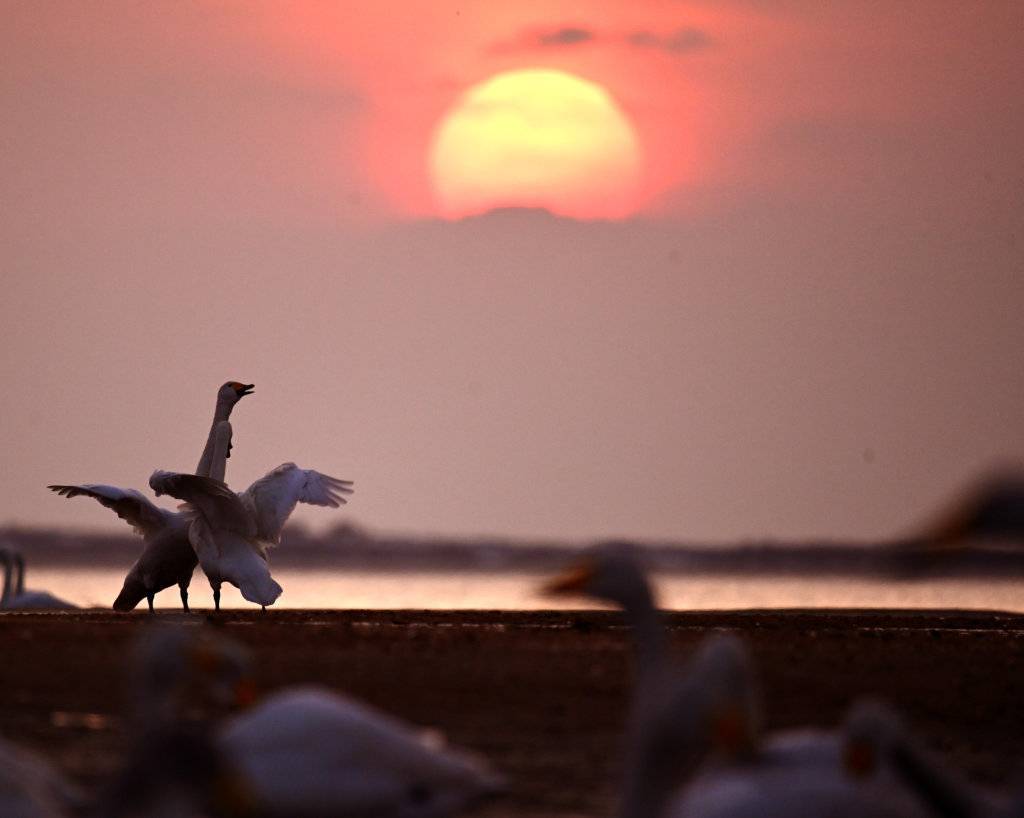 随着天气逐渐转暖,在山东省荣成市越冬的大批天鹅活动频繁,即将开始北迁。每年秋季,大批天鹅从西伯利亚等寒冷地区迁徙到山东荣成大天鹅国家级自然保护区越冬,次年2月底开始北迁。