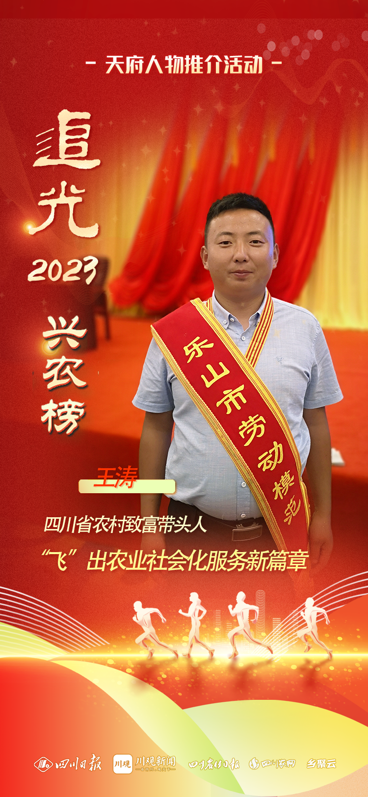 王涛,33岁,四川邦力达乐天农业服务有限公司总经理、夹江县乐天农业机械化服务专业合作社理事长,兼任乐山市人大代表、夹江县科协常委、夹江县工商联副会长,四川省农村致富带头人、乐山市农村青年致富带头人、乐山市劳动模范。合作社先后获得全国星级农业科技社会化服务组织、国家级示范社、四川省省级优秀示范社、全省首批社会化服务省级重点服务组织等荣誉。