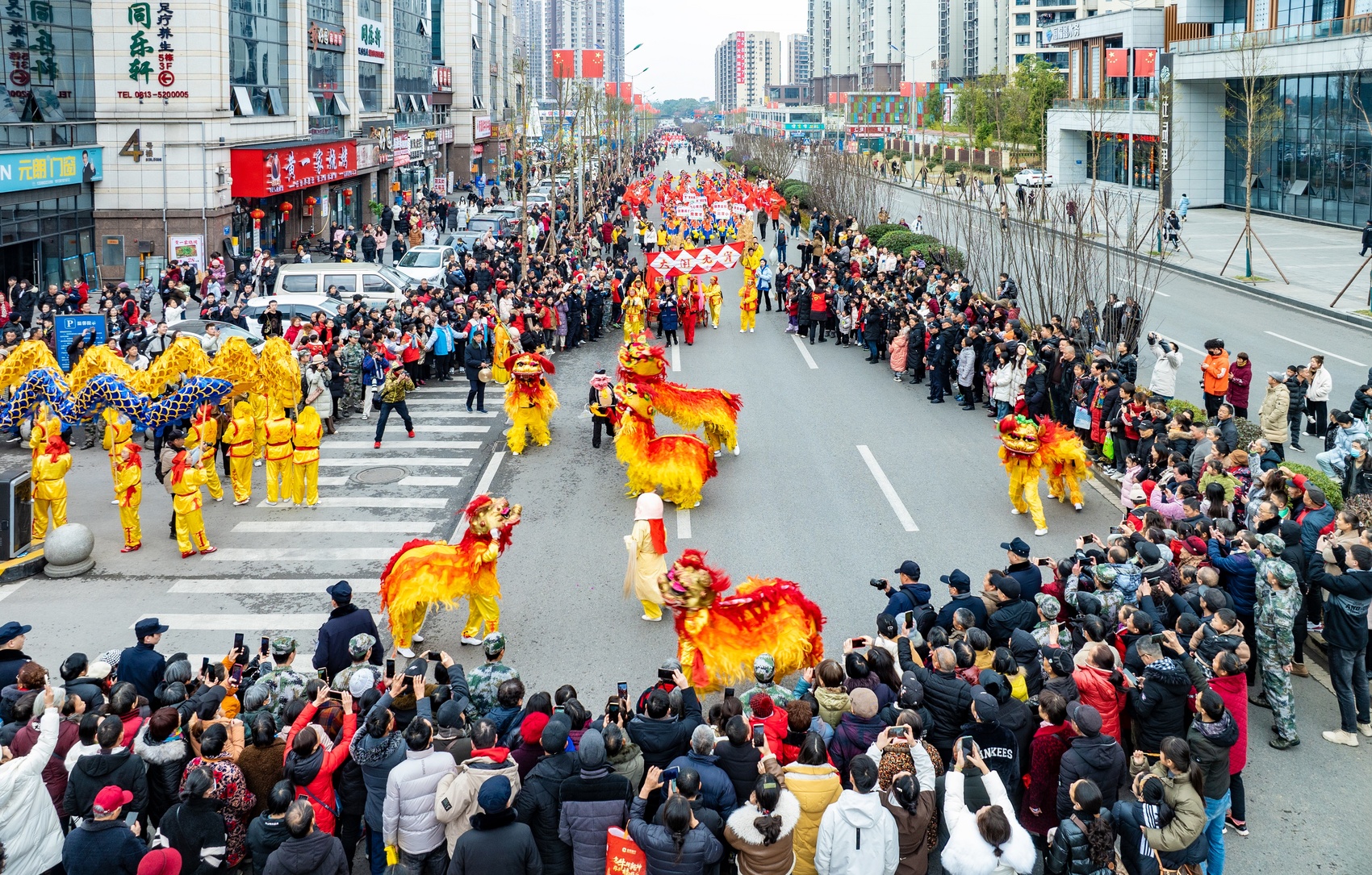 锣鼓铿锵辞旧岁,欢天喜地过大年。2月24日,2024年自贡市“我们的节日·元宵”示范活动“祥瑞龙年·福满西城”—贡井区“龙腾狮跃闹元宵”民俗文化集中展演在贡井新城区热闹上演,精彩的节目吸引上万名市民围观,大家一起热热闹闹过大年,感受中华民族优秀传统文化的魅力。