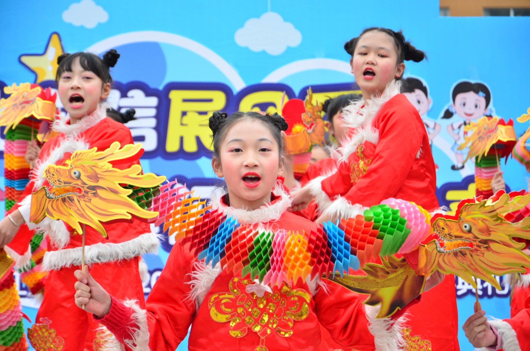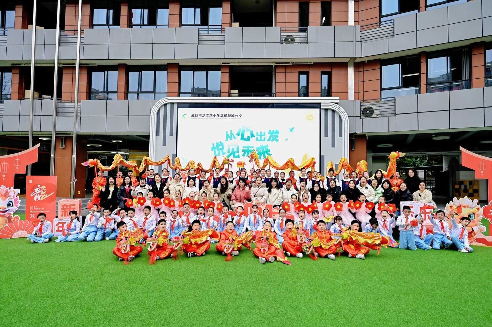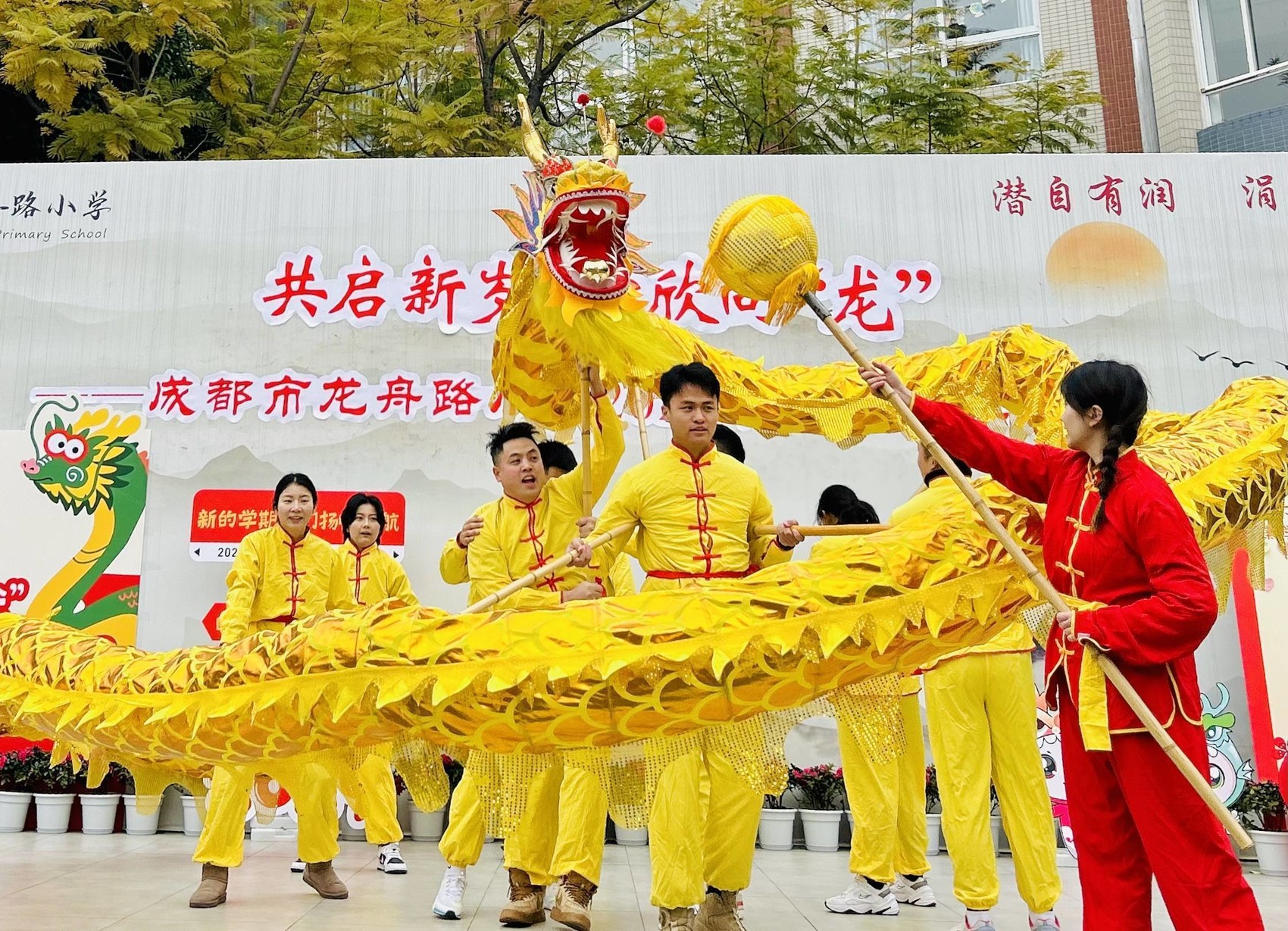 成都市龙舟路小学的老师们带来欣欣向“龙”的祝福。