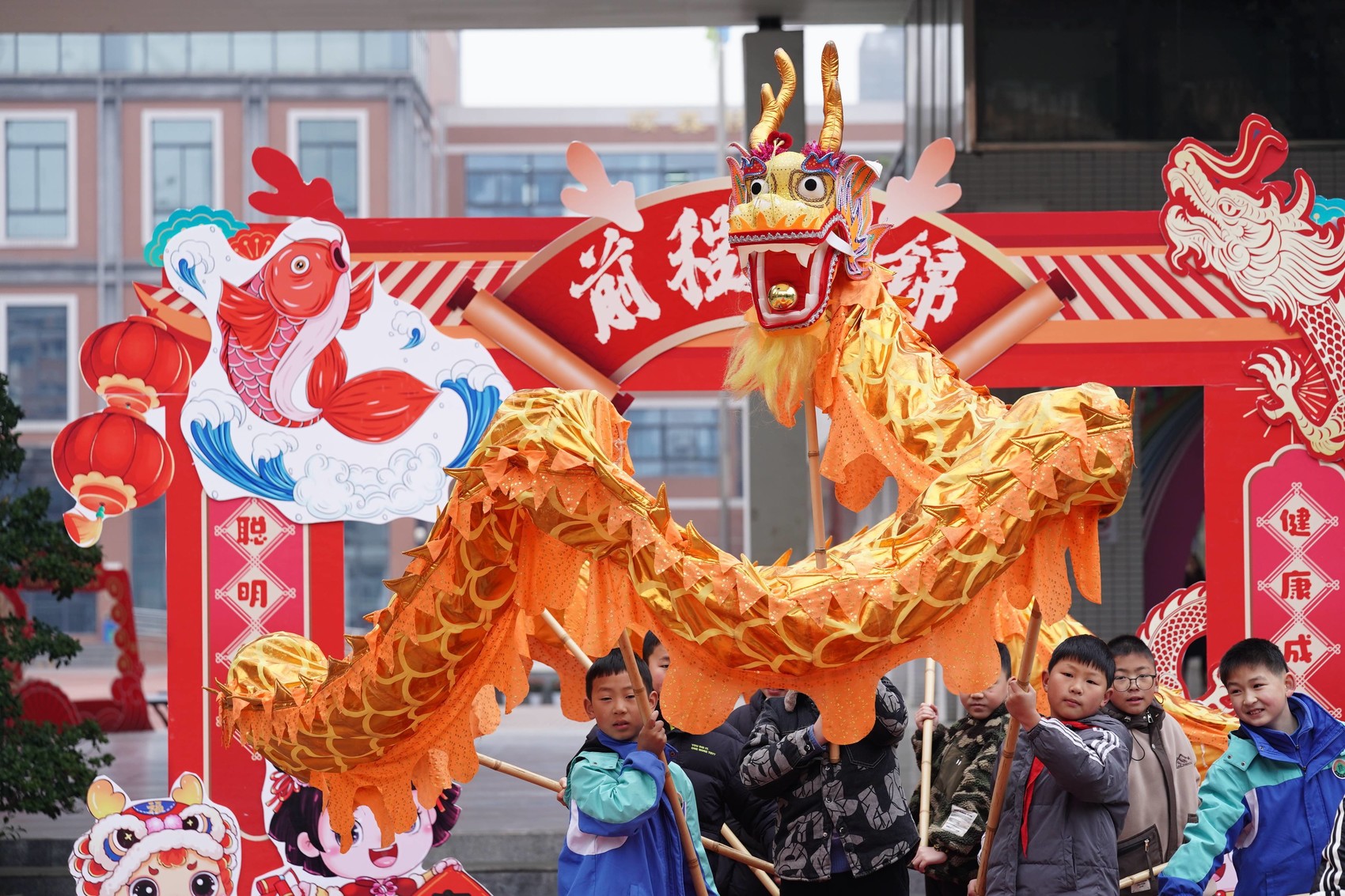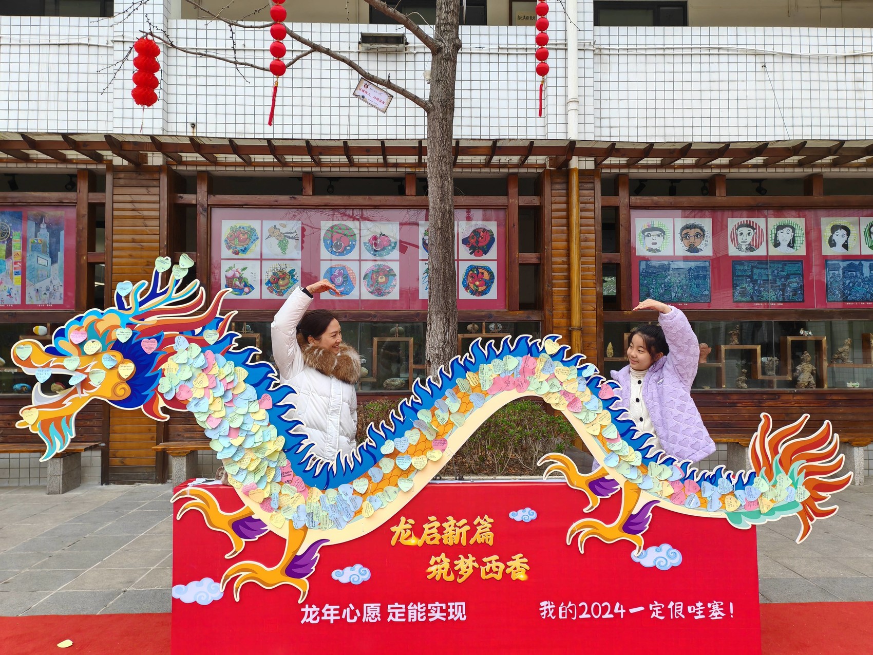西街小学的龙年元素拍照打卡点。