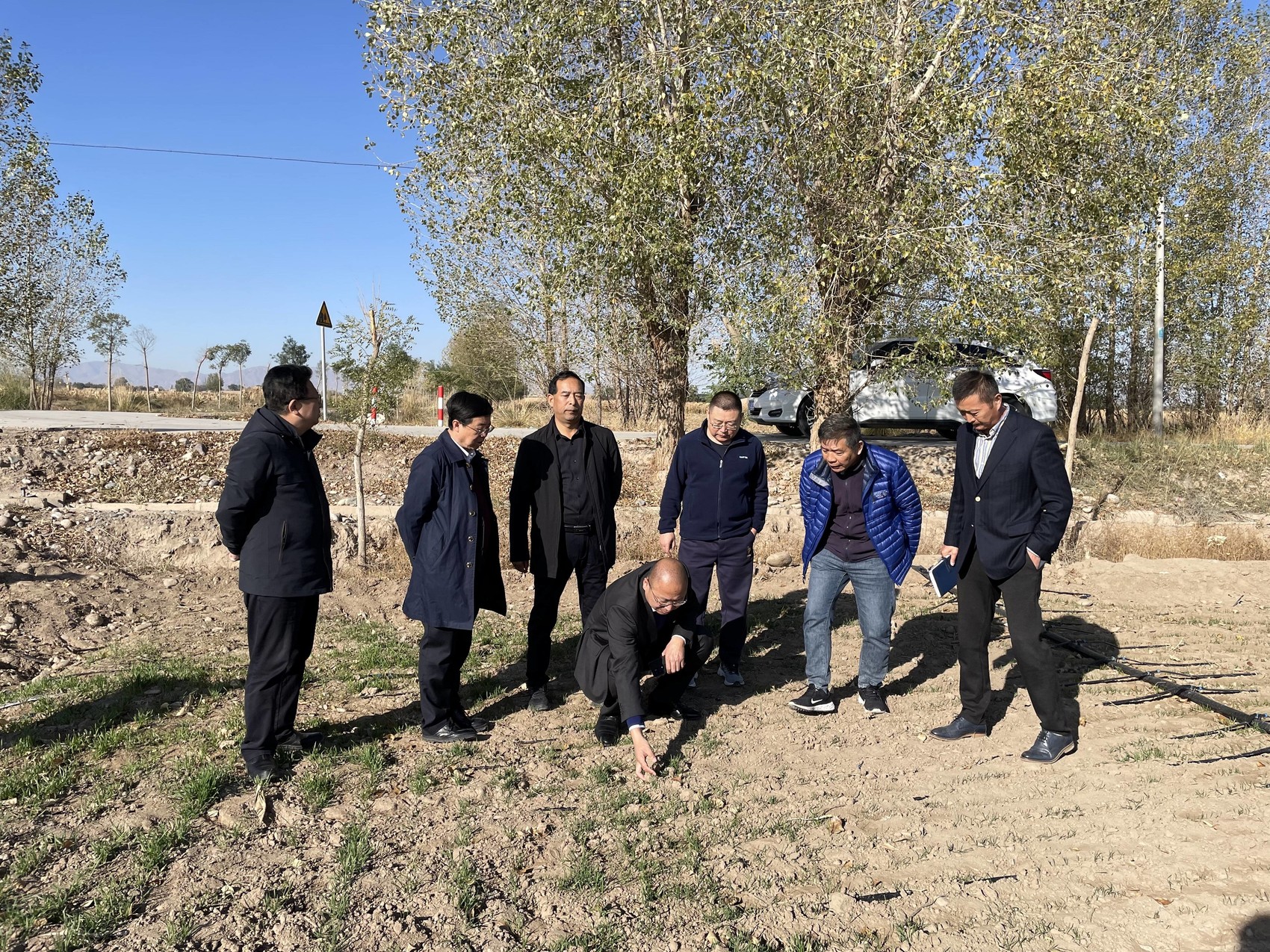 李宗滨(左四)在甘肃省武威市实地考察,计划在当地推广数字农业。