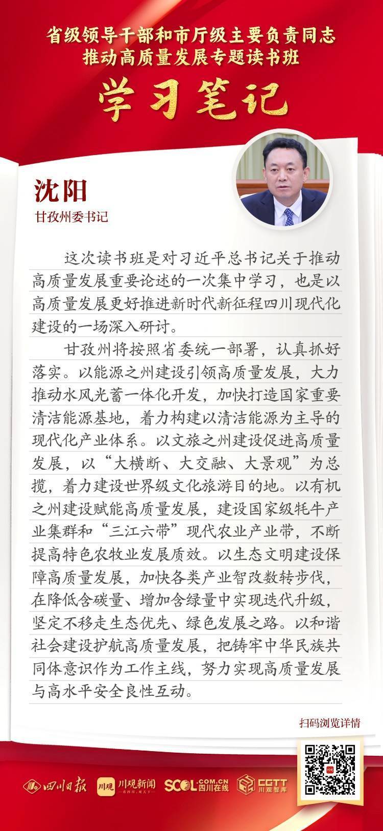 甘孜州将按照省委统一部署,认真抓好落实。以能源之州建设引领高质量发展,大力推动水风光蓄一体化开发,加快打造国家重要清洁能源基地,着力构建以清洁能源为主导的现代化产业体系。以文旅之州建设促进高质量发展,以“大横断、大交融、大景观”为总揽,着力建设世界级文化旅游目的地。以有机之州建设赋能高质量发展,建设国家级牦牛产业集群和“三江六带”现代农业产业带,不断提高特色农牧业发展质效。以生态文明建设保障高质量发展,加快各类产业智改数转步伐,在降低含碳量、增加含绿量中实现迭代升级,坚定不移走生态优先、绿色发展之路。以和谐社会建设护航高质量发展,把铸牢中华民族共同体意识作为工作主线,努力实现高质量发展与高水平安全良性互动。