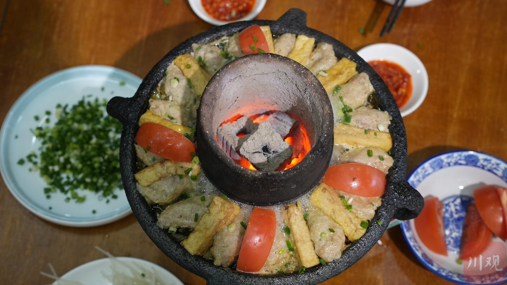 土火锅想要更好吃,蘸料是关键。用普通的用生抽、香醋、味精、花椒油、小米椒、香葱、香油、白糖等纳碗拌匀即可,讲究一些的还加人自制酱料。邓全恩说,在高县很多餐厅都有土火锅,食材味道差别不大,区别主要在于蘸料。