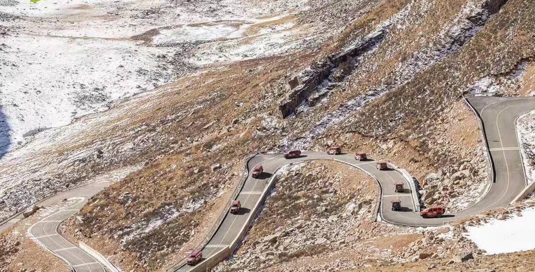 自驾车辆穿行在阿坝大地。钟峻岭 供图