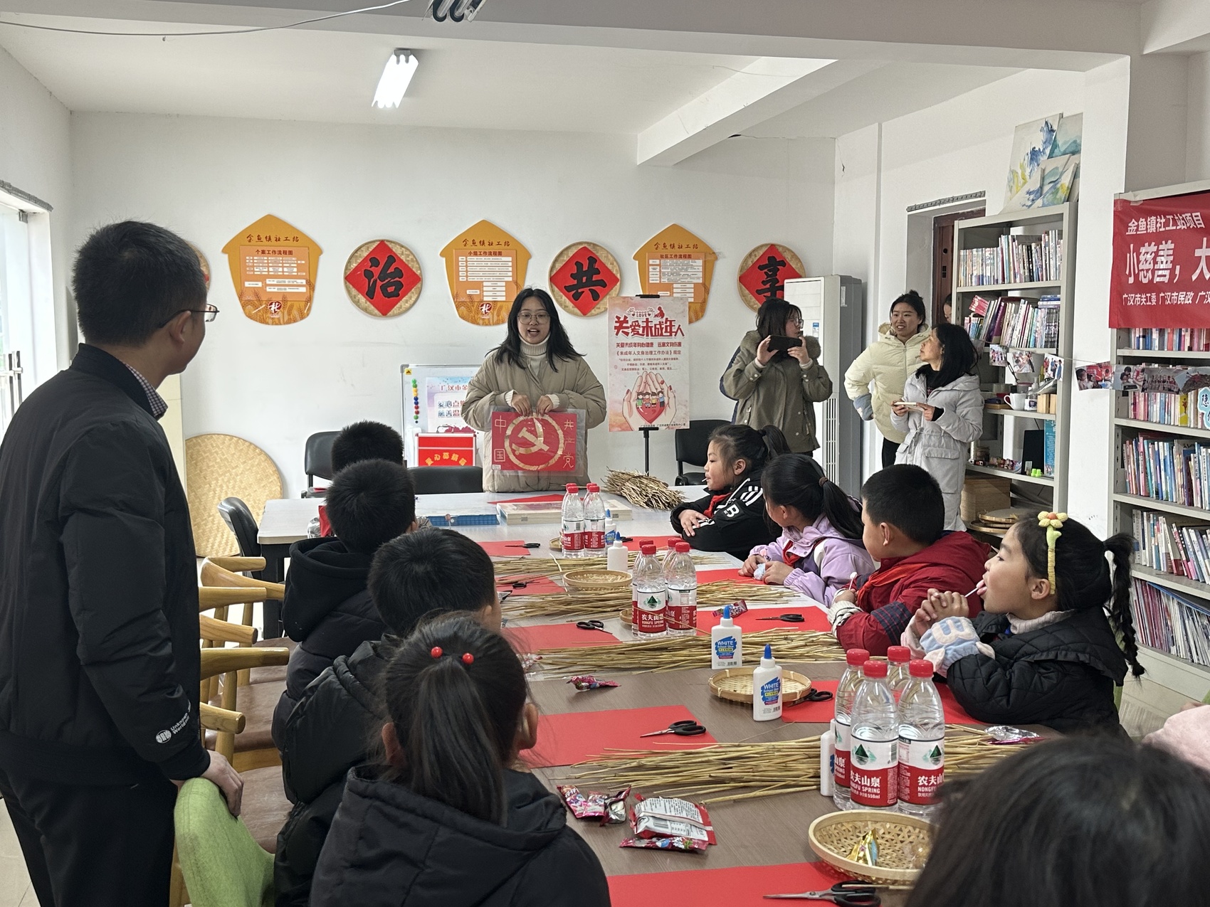 随后,纪检干部带领孩子们来到金鱼镇共治共享中心,通过手工制作秸秆画,体验亲手劳作的乐趣。