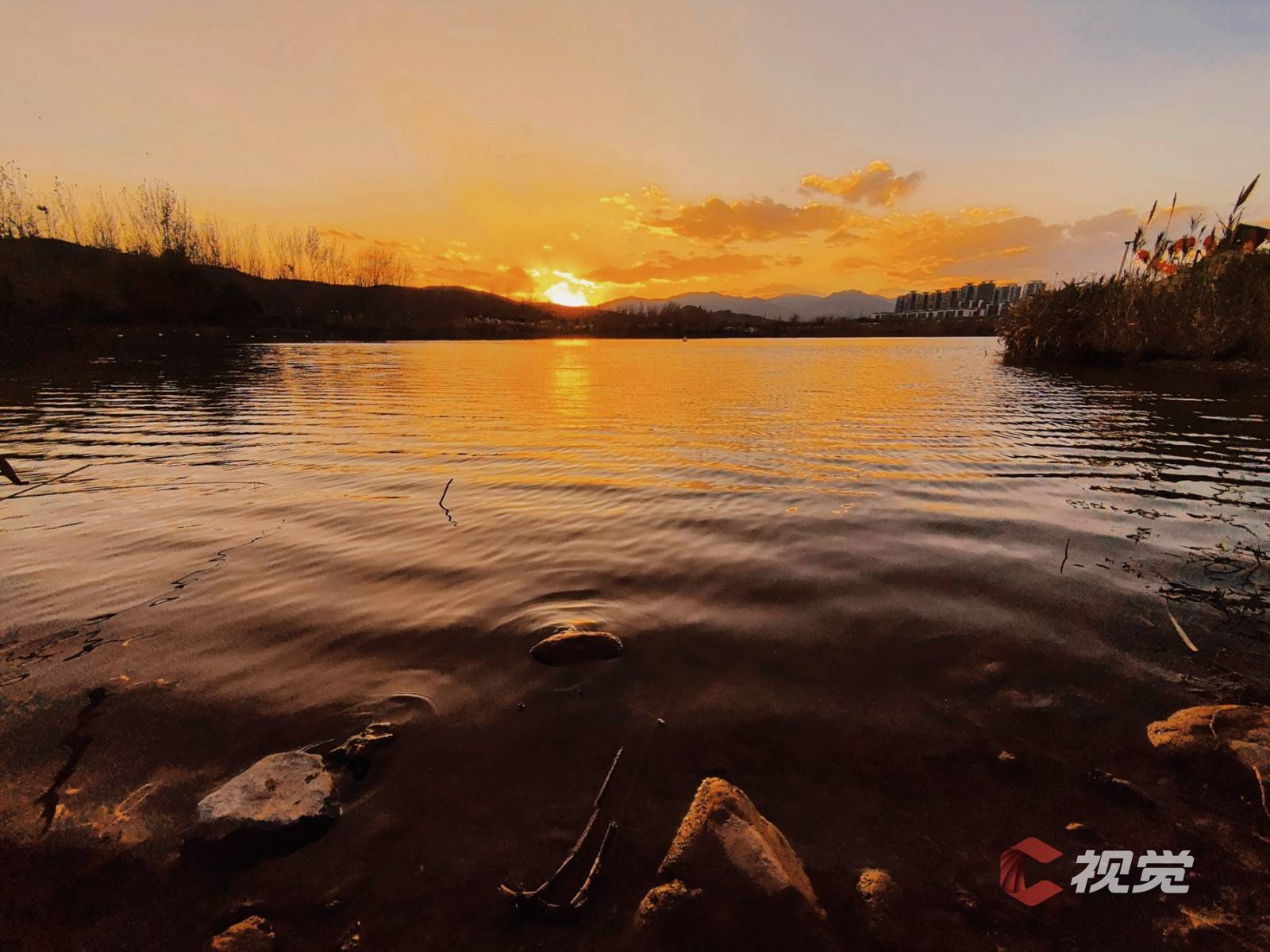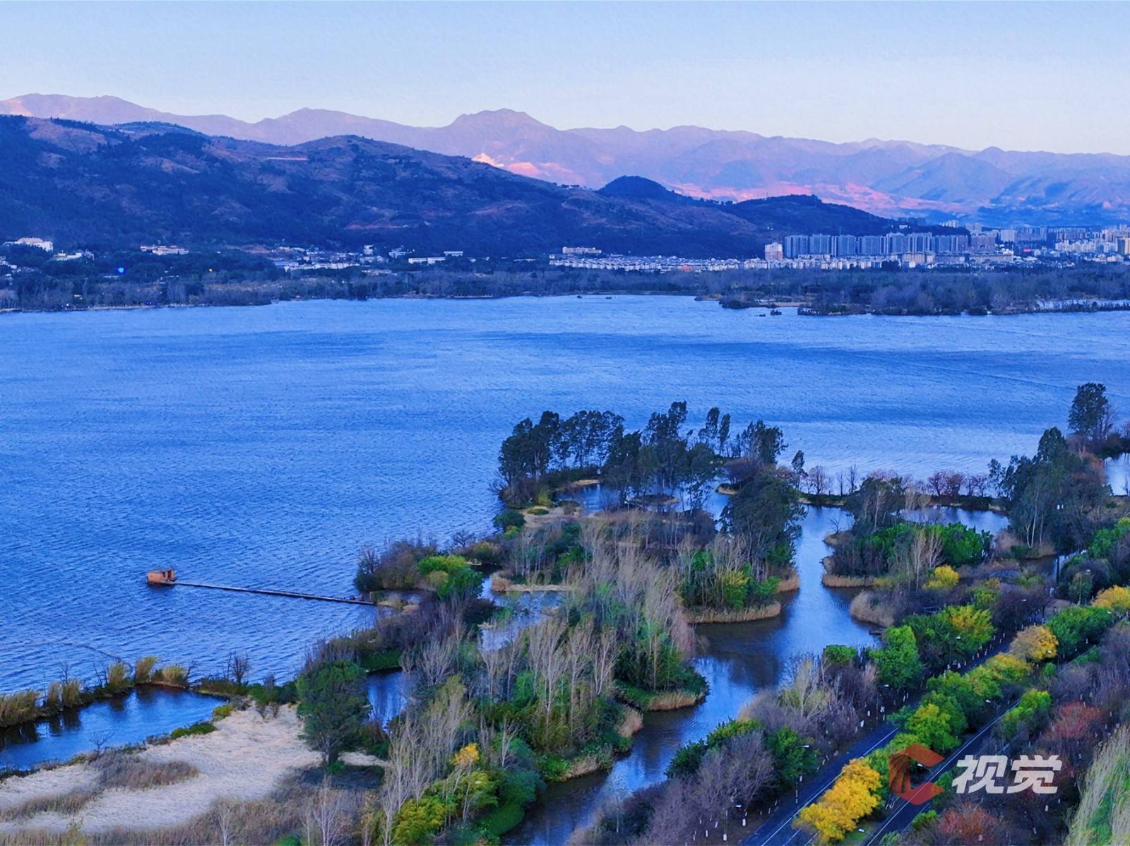 邛海湿地初春美,湖光山色两相宜;高楼大厦排湖岸,鳞次栉比依山立;旧树逢春吐新芽,霞光流金撒满地;西昌湿地公园美,赢得游客久伫立。