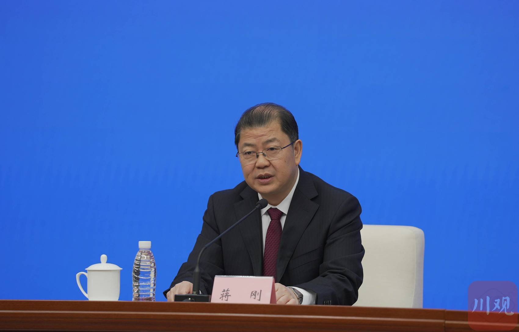 农业农村厅党组书记、省乡村振兴局局长蒋刚在介绍省委一号文件有关情况。