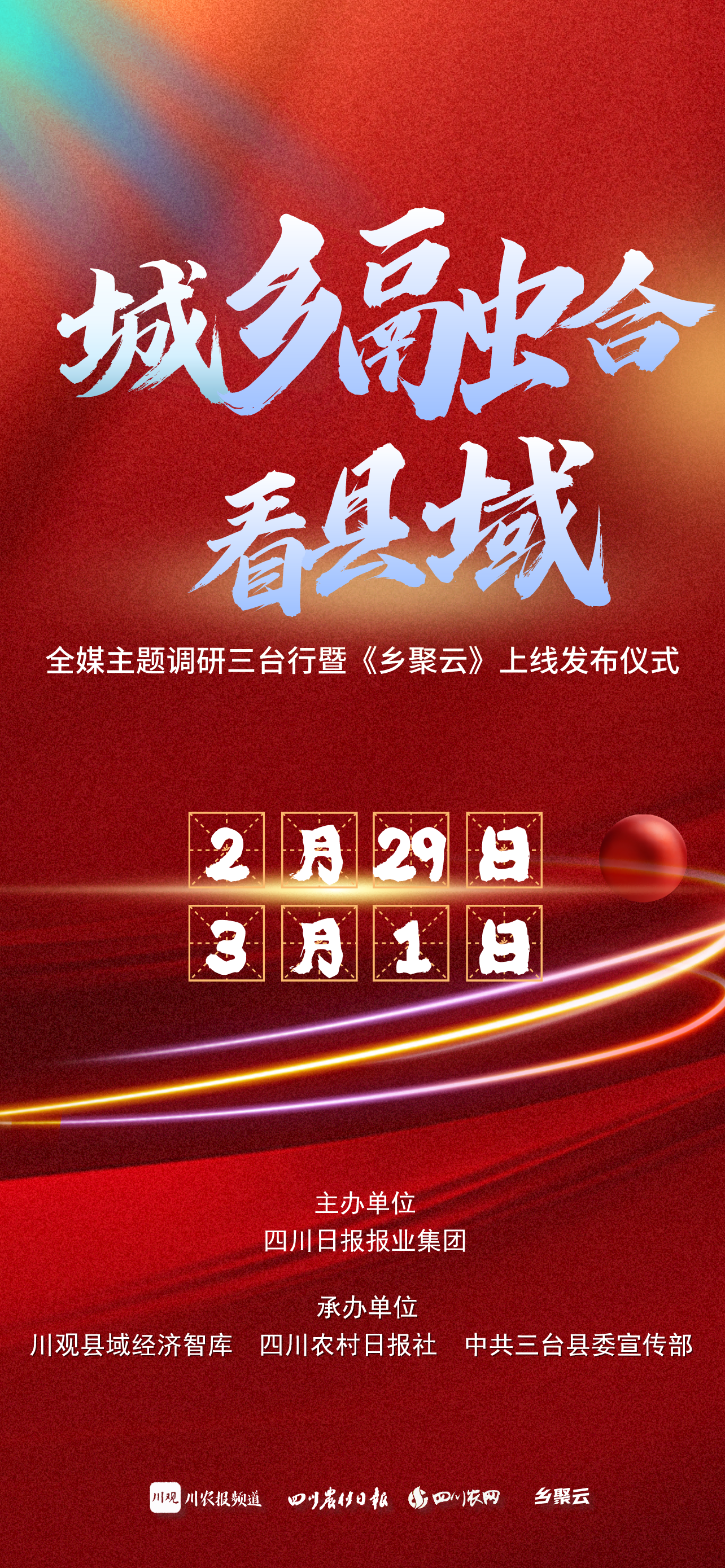 推进城乡融合发展,县域是重要切入点。为生动展现四川各地城乡融合发展的创新实践,助推城乡融合发展迈出实质性步伐,2月29日,城乡融合看县域——全媒主题调研三台行启动。