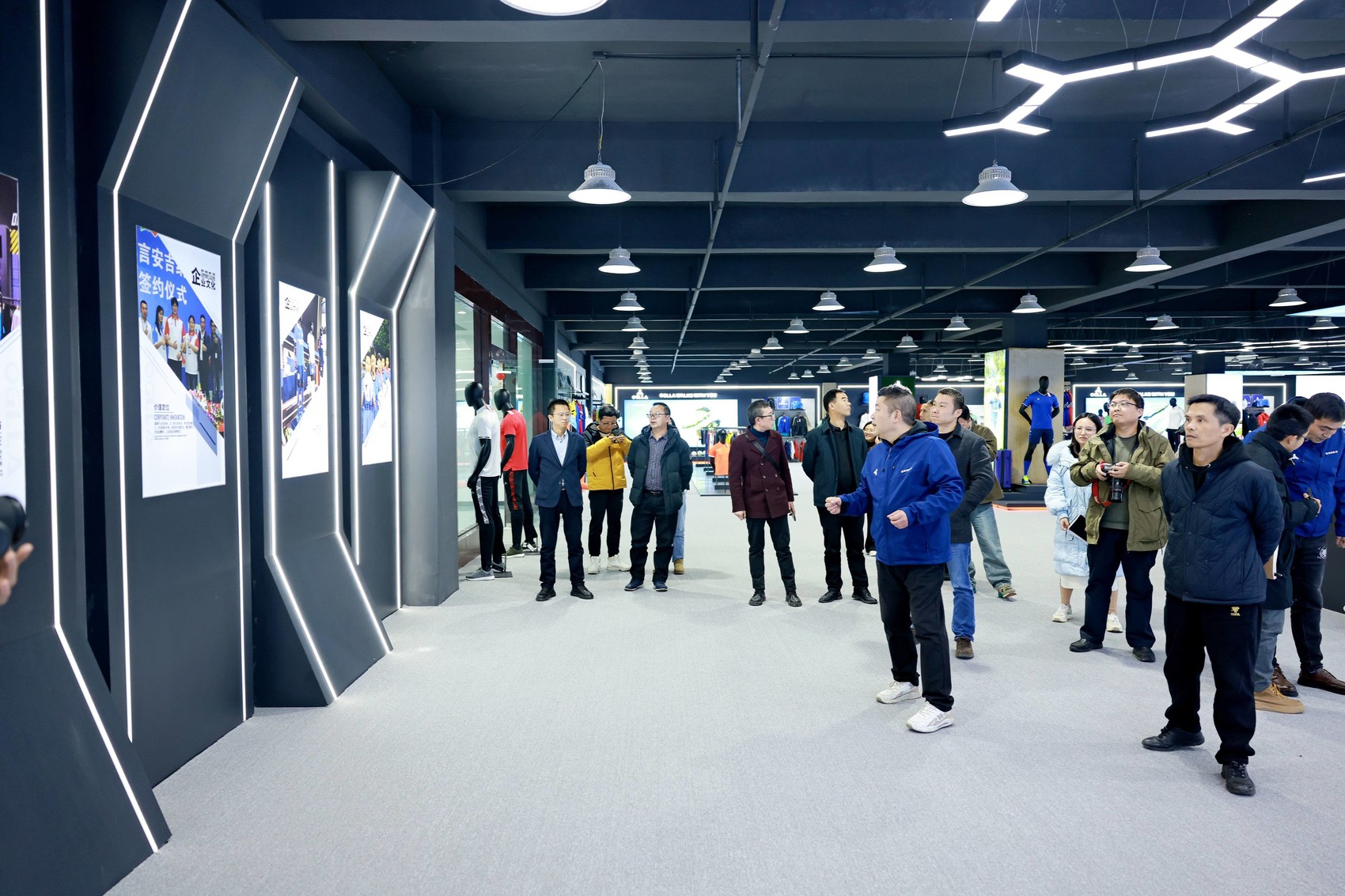 在安吉纳体育的针车车间,针织工人正利用设备生产球鞋配套材料,生产进度实时在数字化管理中心的屏幕上呈现。裁断车间、针车车间等车间生产的配套材料在成型车间最终定型,走向国内外市场。在安吉纳体育品牌展厅内,展示着自主研发、生产的上千种不同款式的各类运动鞋、足球鞋、足球运动服等专业球服。