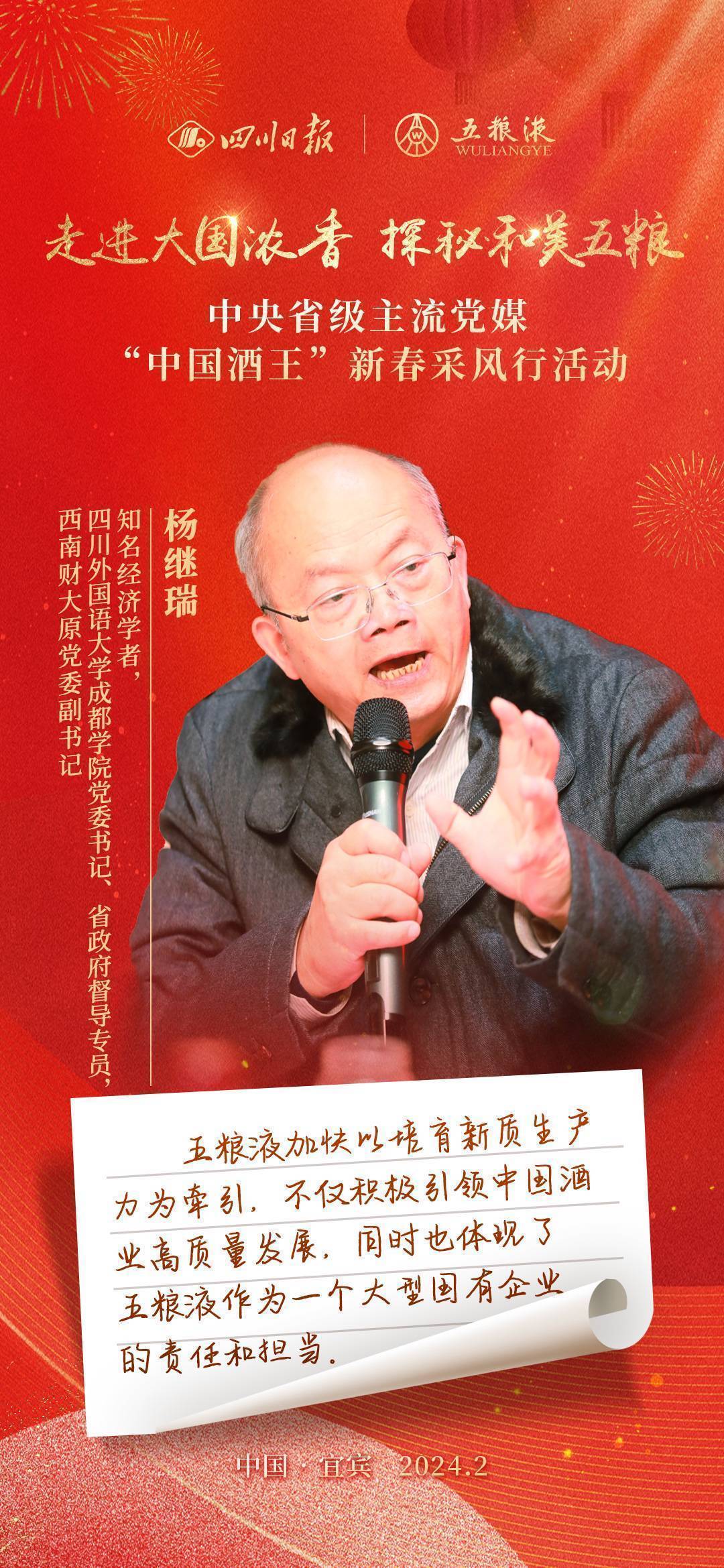 成都外国语学院党委书记、四川白酒金三角发展研究院执行院长杨继瑞表示,五粮液在当前“三期叠加”的市场下走出了一条靓丽的增长曲线,作为行业龙头真正体现了大型国企的担当。