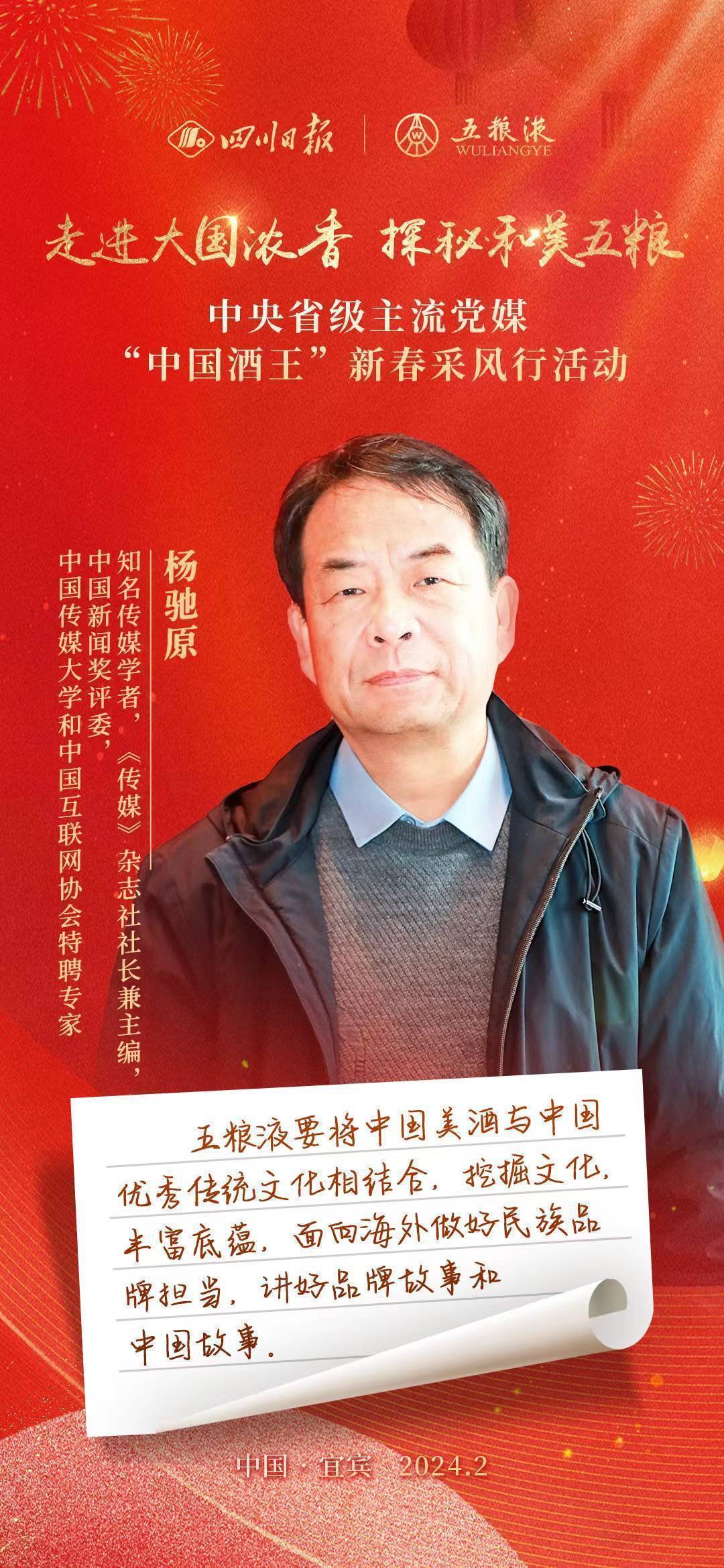 《传媒》杂志社社长兼主编,中国新闻奖评委杨驰原表示,作为资深白酒消费者,这次采风收获颇丰,“以前喝五粮液品的是它的酒香,以后喝五粮液品的更是文化,是故事”。