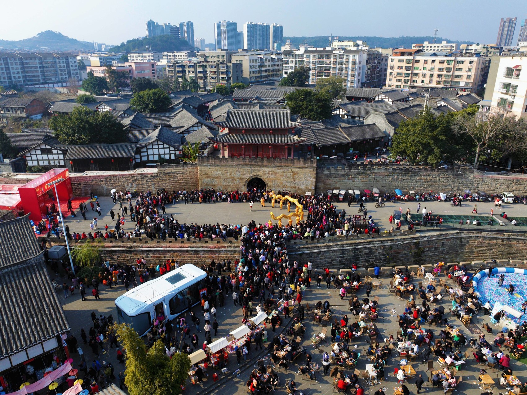 潼川古城运营方绵阳宏达投资经营(集团)有限公司策划部工作人员范莎莎介绍,春节期间,潼川古城开展了传统汉服、民俗民乐、舞龙巡游、非遗体验、异业合作音乐会、3D灯光秀等丰富多彩的活动,整个春节期间吸引了25万人次来访,日均客流量达2.5万人次以上,单日最高客流量达3.6万人次。