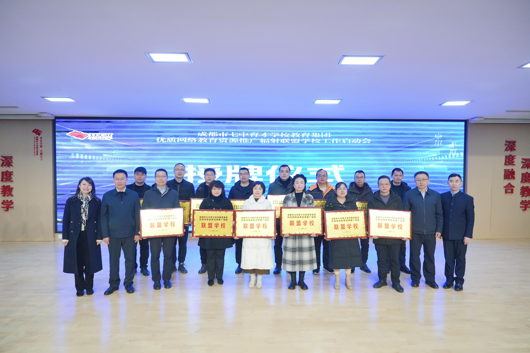如何更好地发挥名校引领作用,促进教育优质均衡发展?3月1日,成都市七中育才学校教育集团优质网络教育资源推广辐射联盟成立。来自成都东部新区、邛崃市、简阳市等地的61所联盟学校齐聚成都市七中育才学校(水井坊校区),共同探讨优质教育资源的共享之道,共同商议联盟学校的高质量发展之路。