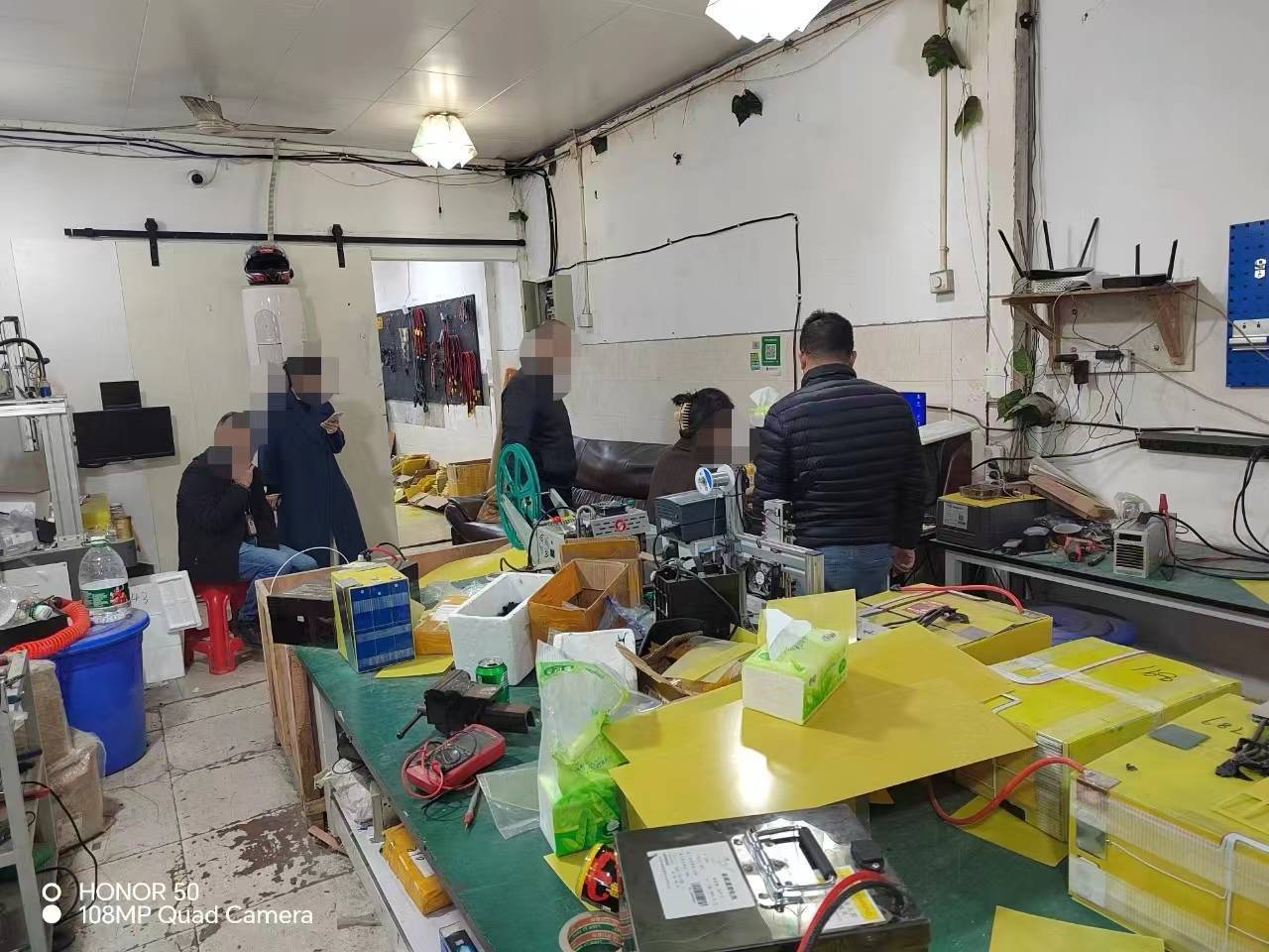 近日,成都市金牛区市场监管局执法人员依据举报线索,对位于金牛区茶店子横街23号的某电动车车行进行检查,发现该店正在组装电动自行车用锂离子电池,现场有生产所用的电池电芯、电池保护板、半成品电池组和印有“巨能动力、成都巨能新能源锂电池有限公司”标签的成品锂电池组。因涉嫌质量问题,执法人员现场扣押涉案物品,并立案调查。