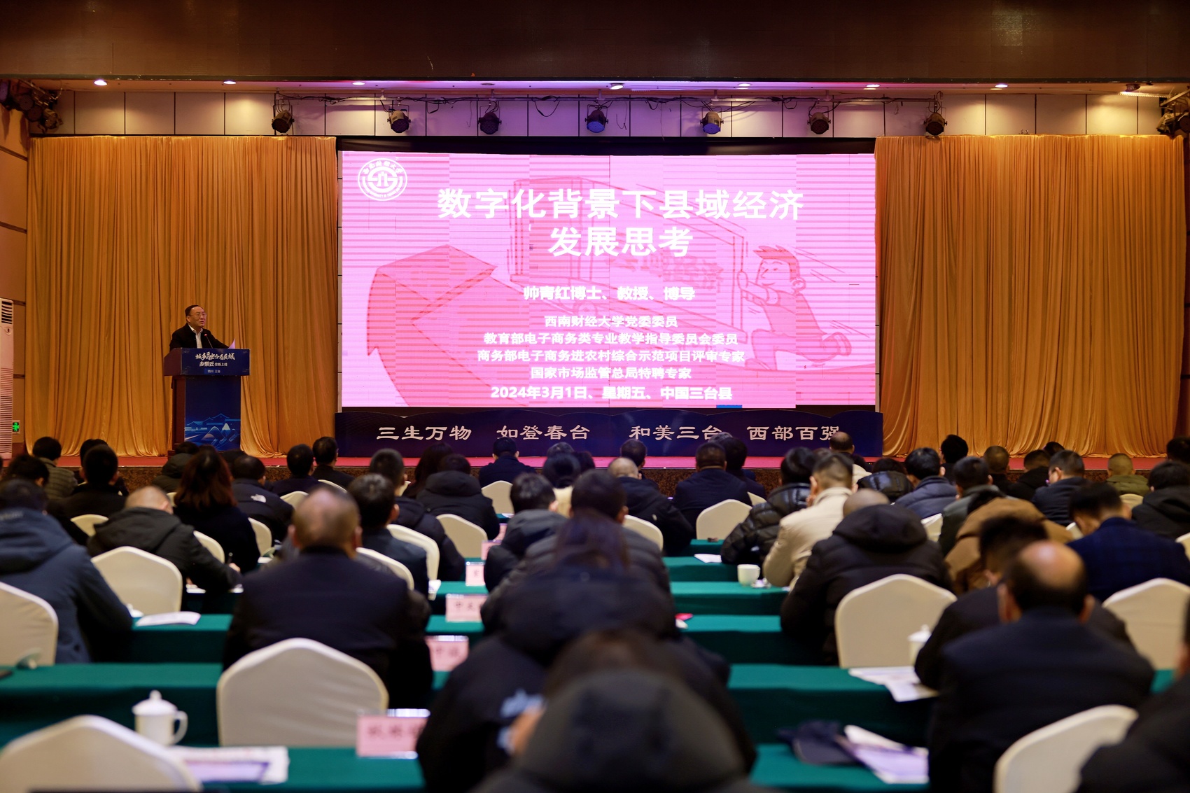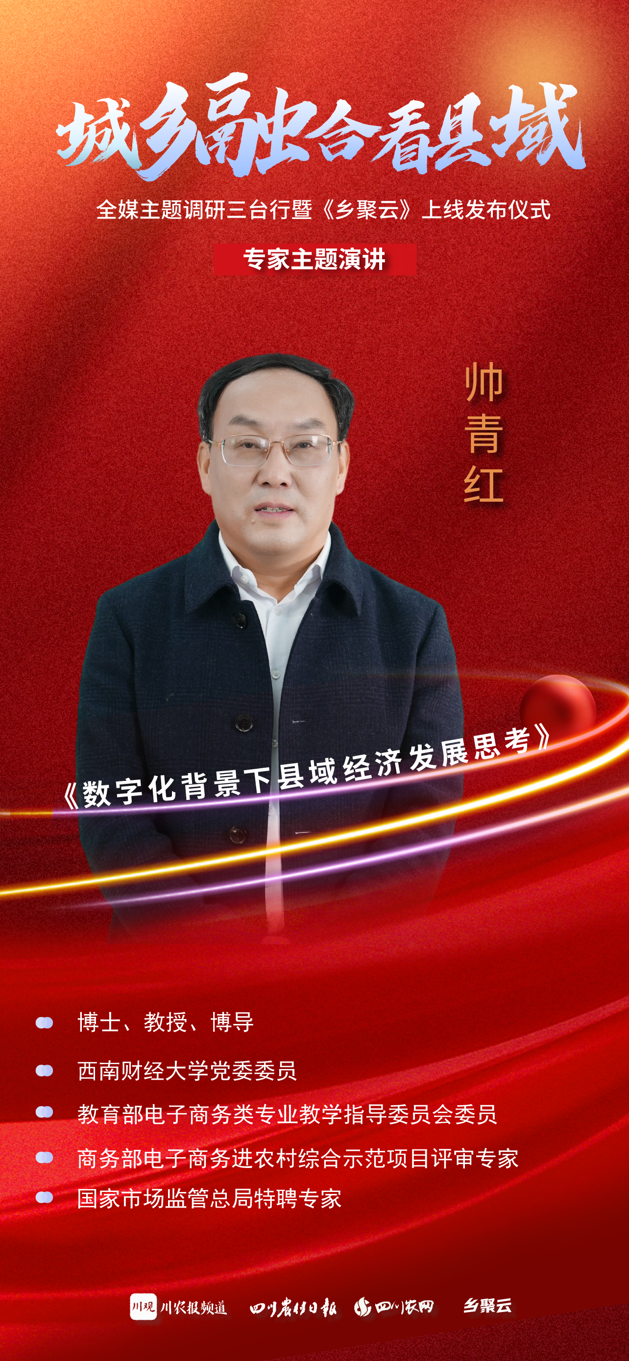 3月1日,“城乡融合看县域——全媒主题调研三台行暨《乡聚云》上线发布仪式”在绵阳市三台县举行。会上,西南财经大学党委委员、教育部电子商务类专业教学指导委员会委员帅青红以三台的创新实践为样本,作了《数字化背景下县域经济发展思考》主题分享。
