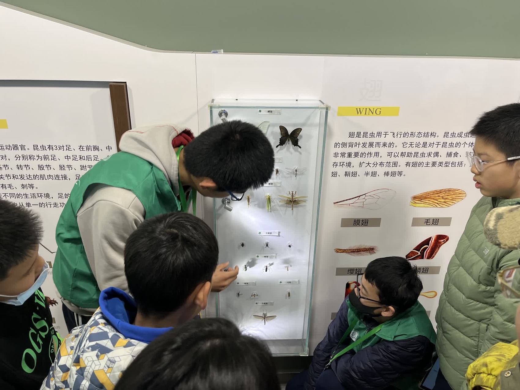 中小学生在昆虫博物馆临摹昆虫标本