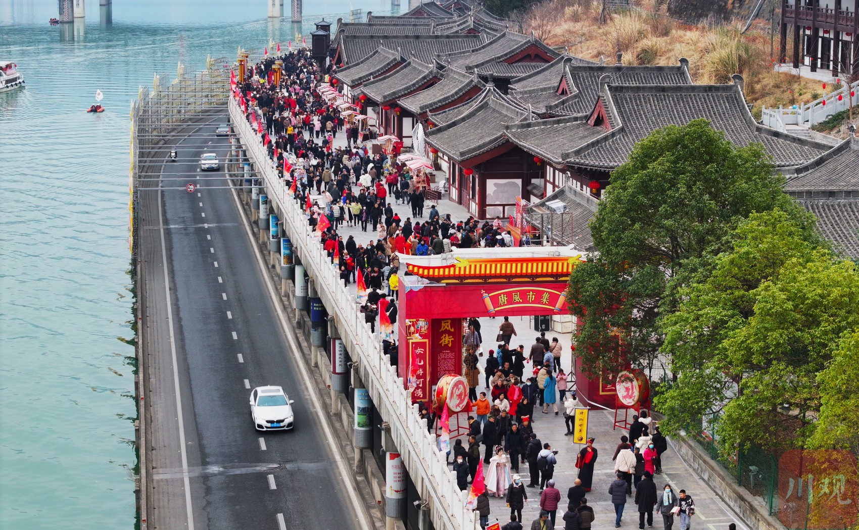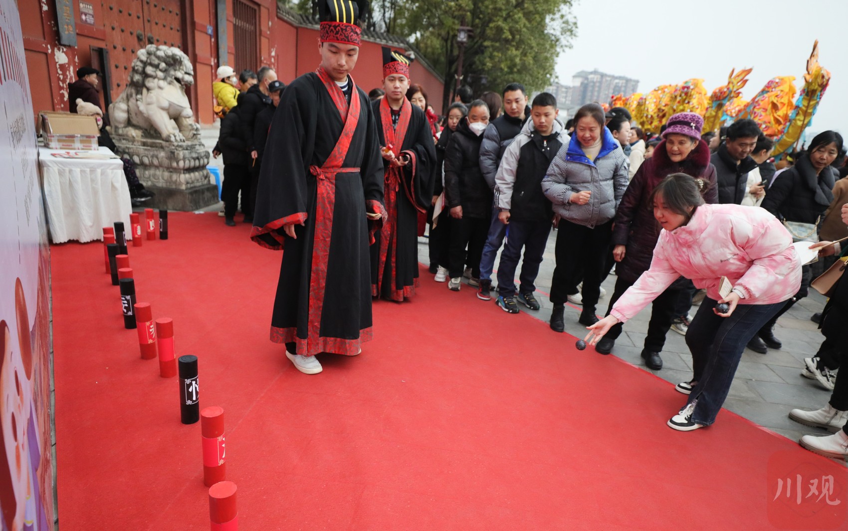 欢乐踏歌、街市游览、捶丸投壶……3月3日,2024年“正月二十三·女儿游河湾”群众文化惠民活动(以下简称“女儿游河湾”活动)在广元市利州区启动,皇泽寺曌字文化广场、凤街等活动现场人头攒动、乐声悠扬,一片欢乐的海洋。