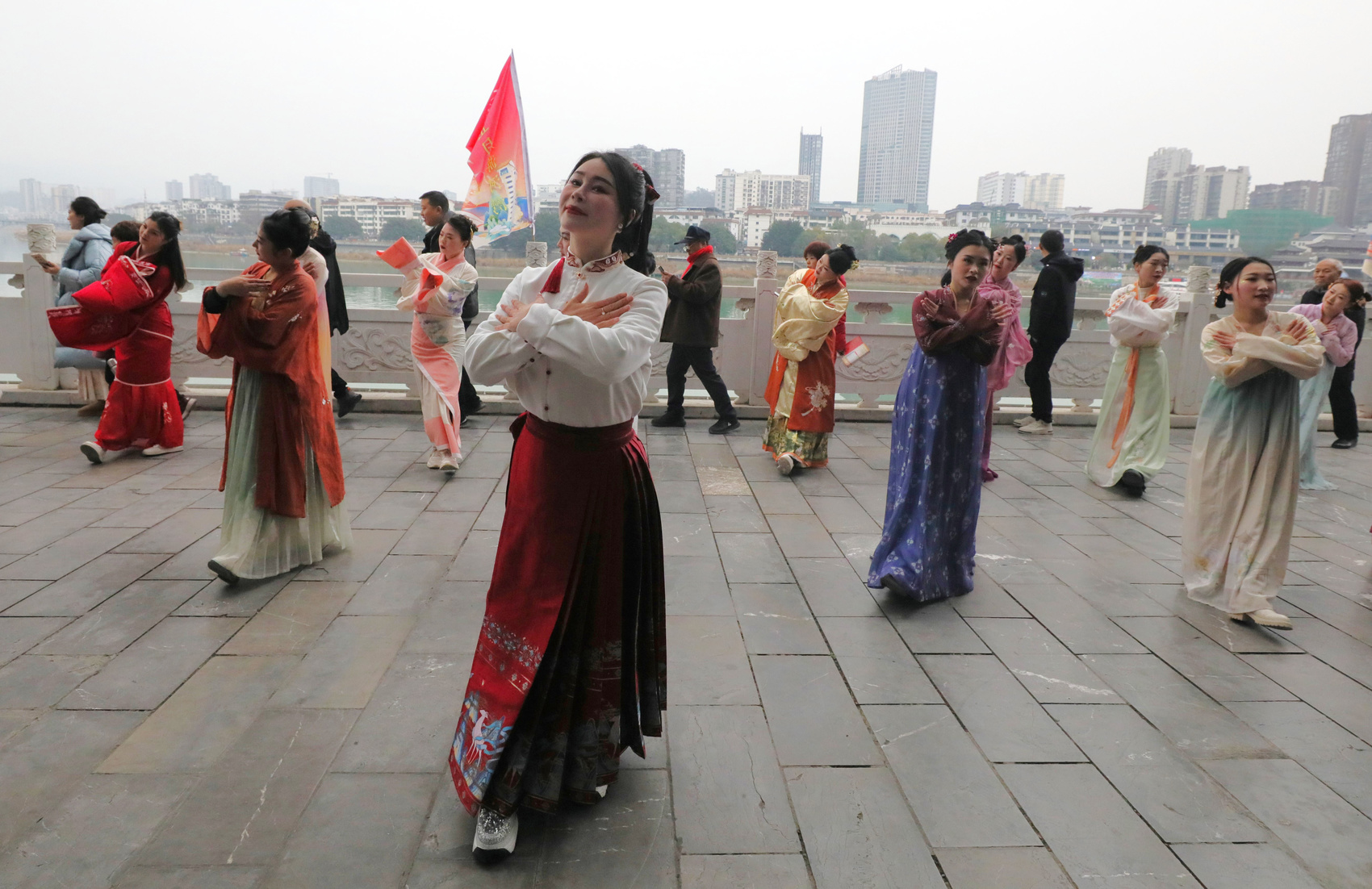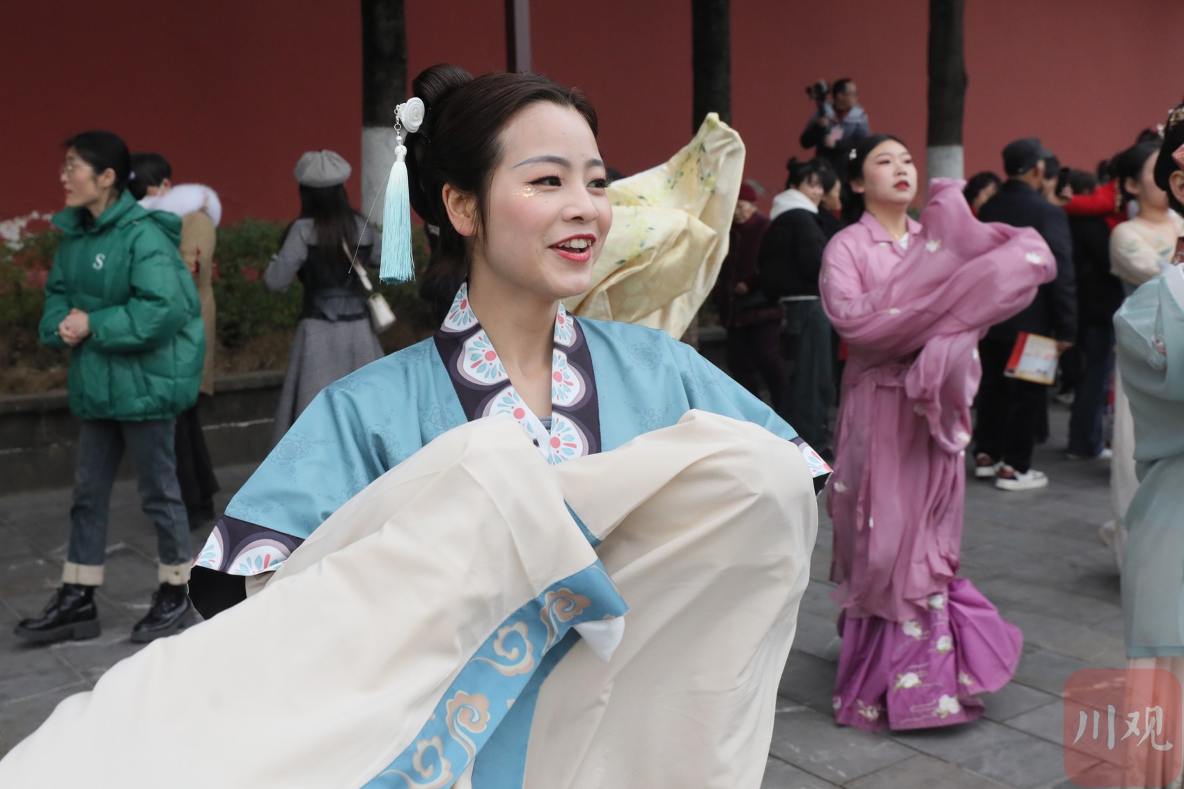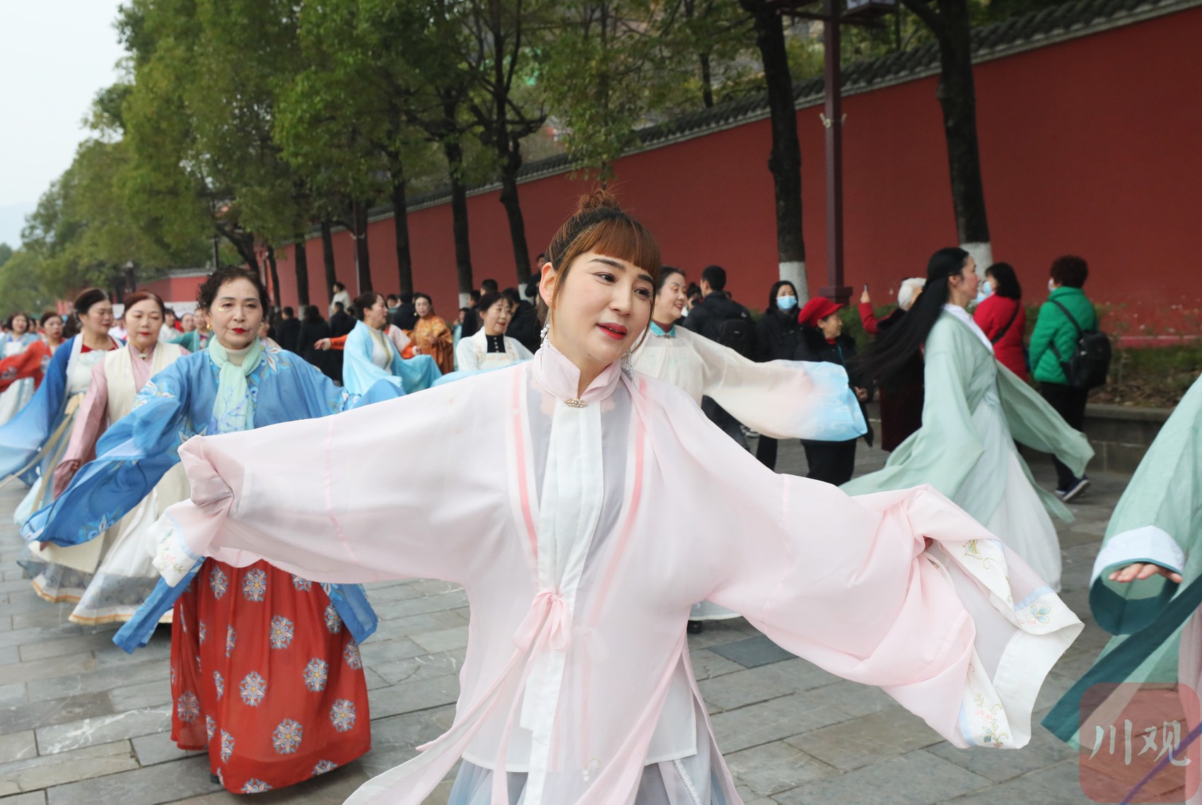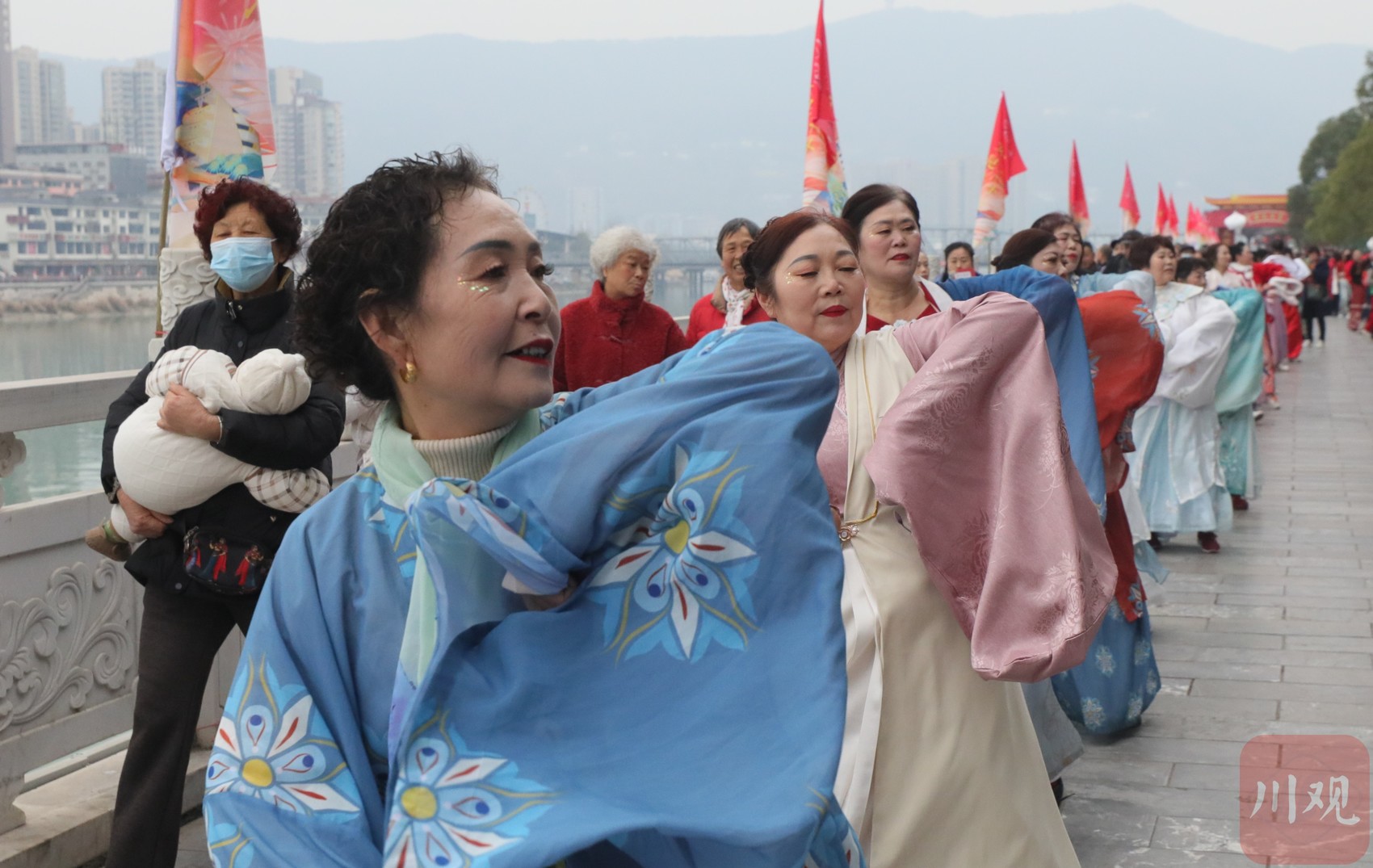 “女儿美女儿多,女儿汇成河,嘉陵江波连波,唱着女儿歌……”3月3日(正月二十三),广元市利州区“凤舞利州踏歌游”群众文化惠民活动在嘉陵江栖凤湖两岸多个广场同时进行,200名身着唐风汉服展演人员、数千名群众,同跳《女儿河》,整齐的节奏、舞动的色彩、悠扬的欢歌,重现了古代俪人踏歌起舞的传统文化魅力。