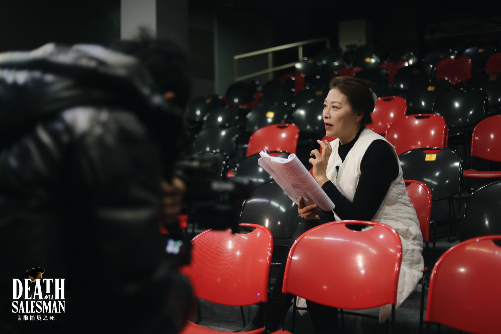岳红在话剧《推销员之死》排练现场