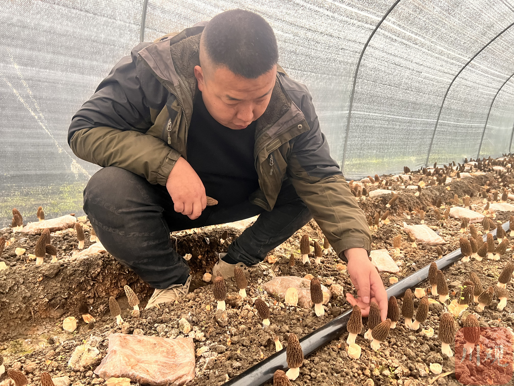 罗茂涛是广汉市金轮镇的一名种植大户,从2018年开始种植羊肚菌以来,每年2月中旬至3月中旬,他都要重复这样的采摘动作,一直到将每一颗羊肚菌“收入囊中”。