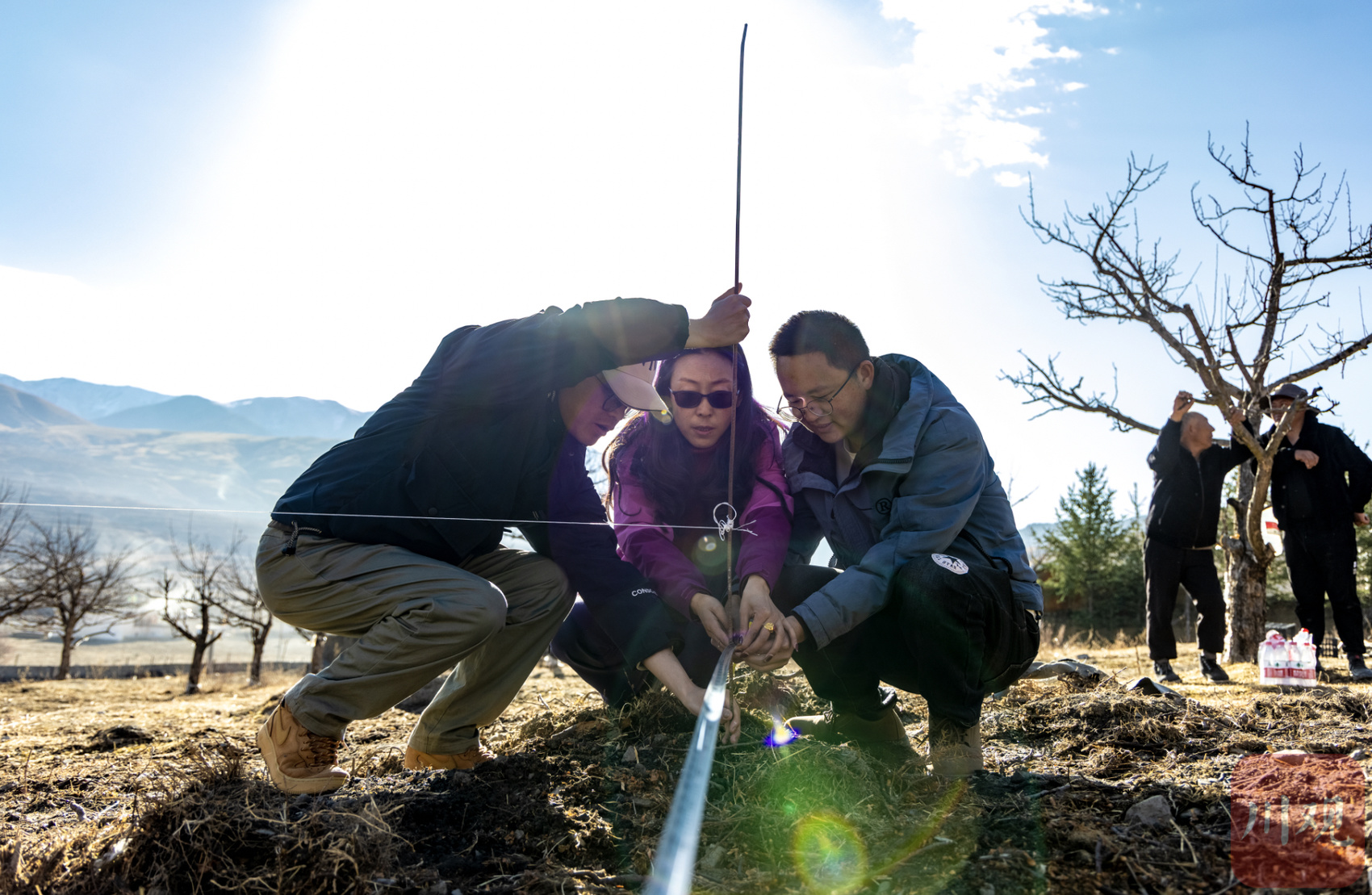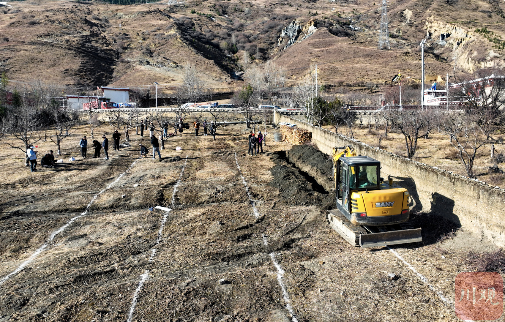 划线、开沟......3月5日,道孚县鲜水镇亚洛加村苹果基地试种正式开始。